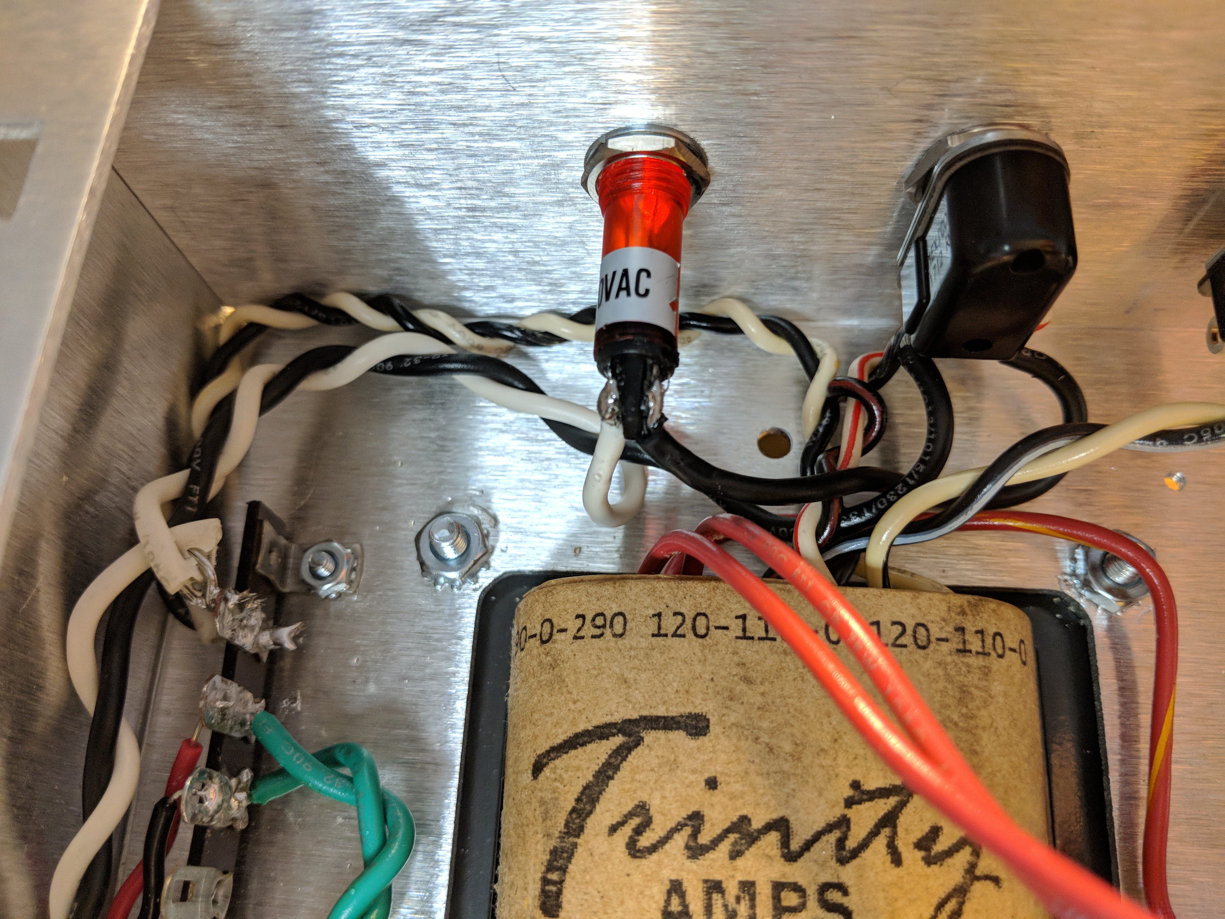I've just wired up the power transformer, heater wires, power switch, fuse, IEC & light so far and then started to do some continuity checking. Much to my surprise, both heater wires now indicate a short to ground. However, reading through the forum, and confirming what I had thought, is that the heater output windings on the transformer have very little DC resistance and hence why the multimeter would indicate a short. So, I take this reading to be just fine.
