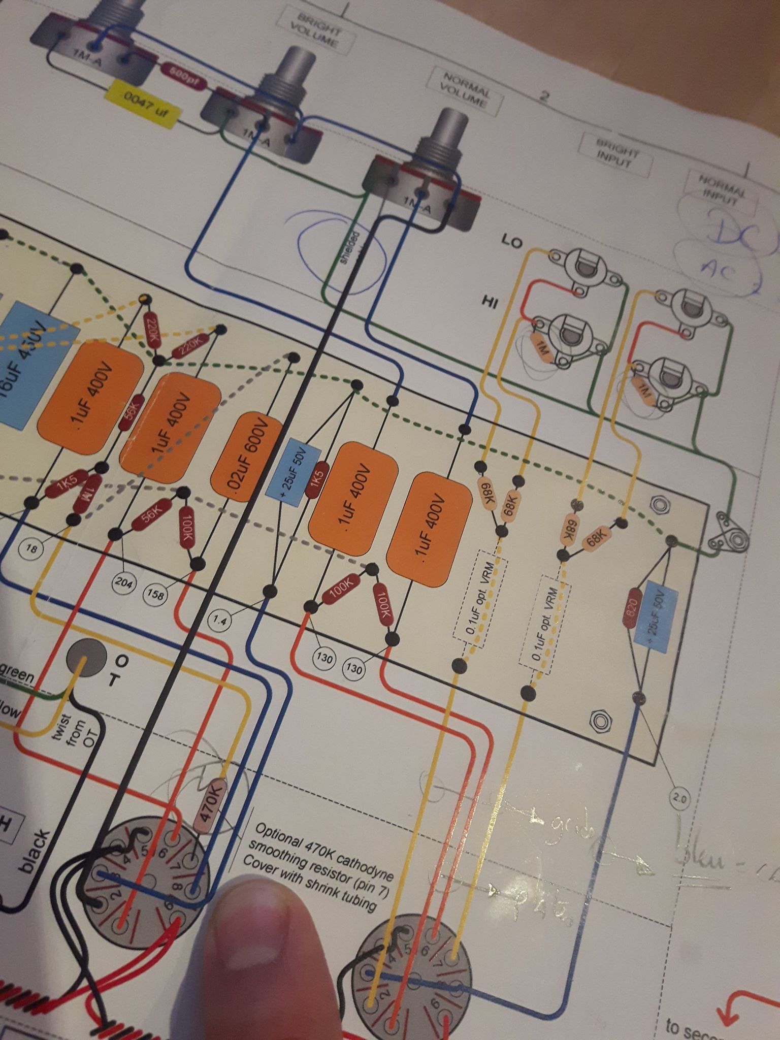 - Optionnal 470K cathodyne : Is the 470K resistor optionnal or also the yellow wire itself is also optionnal ? +it's optionnal, ok... but what the difference with or without ??