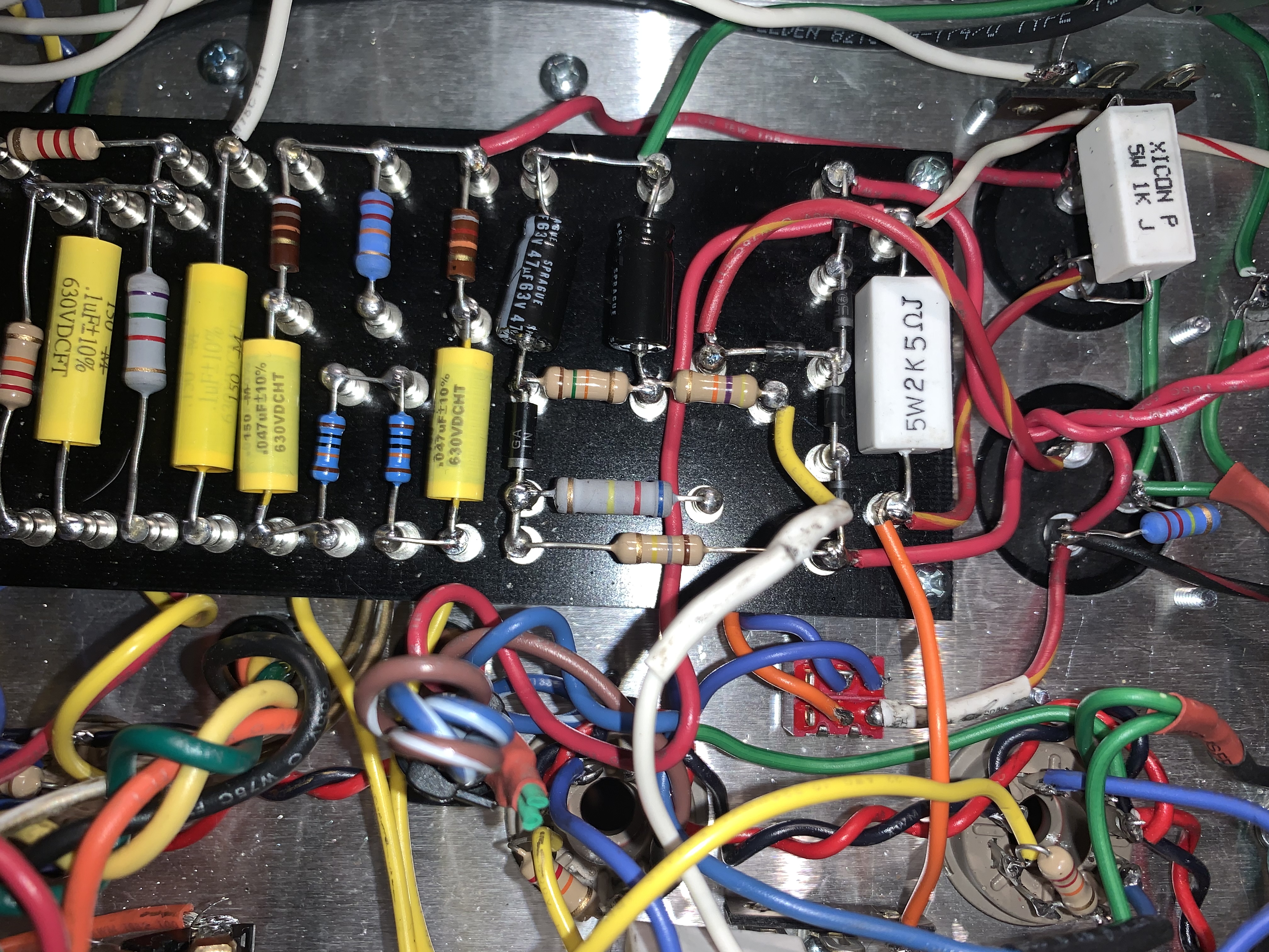 1. When the overdrive potentiometer is turned past about 9:00 it has an extremely high pitched squeal. There is also a low hum also only when turned past 9:00. While I would expect some noise as the potentiometer is turned up, this comes on suddenly. Moving the wires does not eliminate the noise.