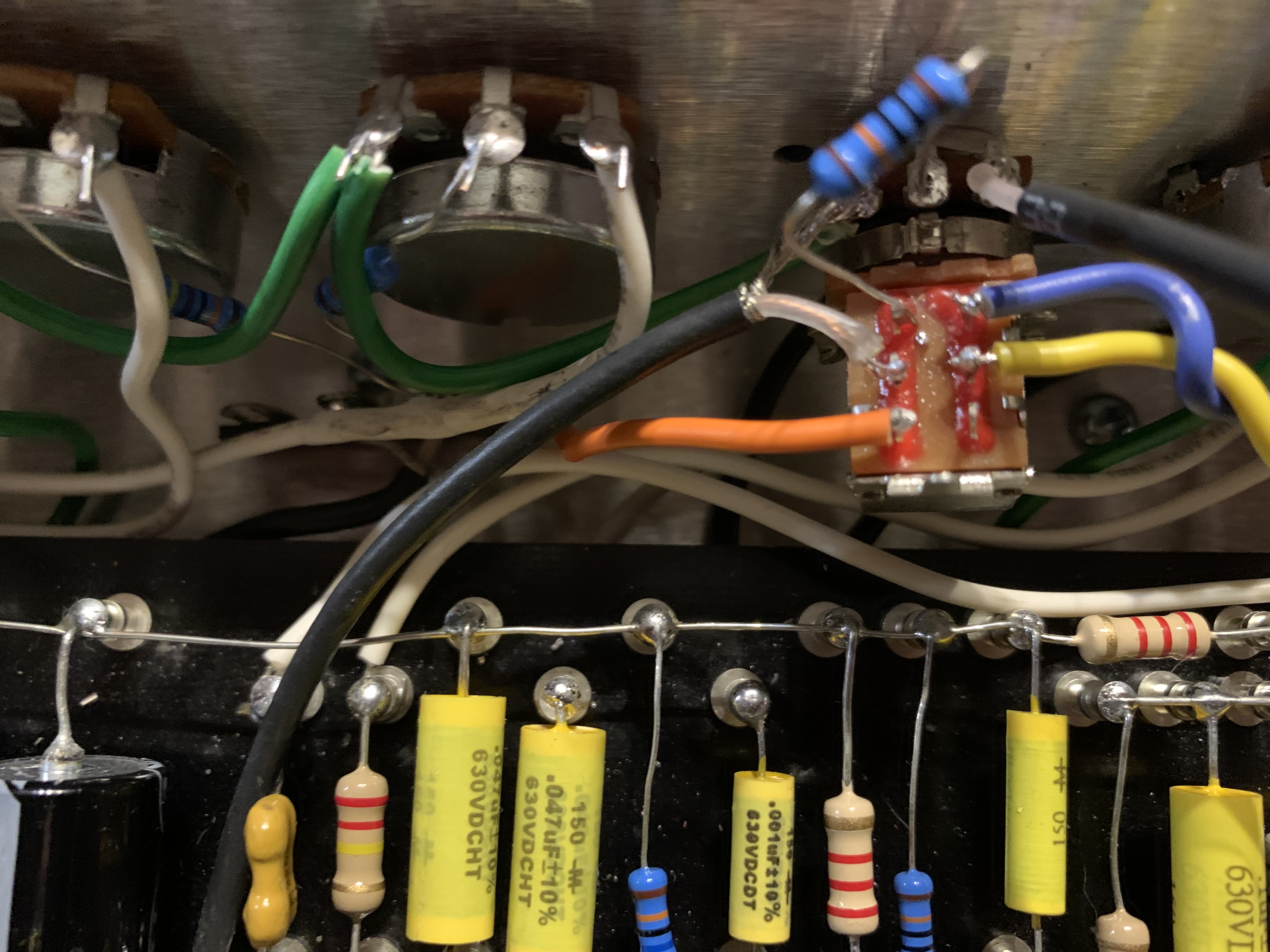 The way I have it hooked up is not the way it is on the overdrive board diagram. The foot switch only works when the overdrive switch on the amp is pulled out. The foot switch then turns off the overdrive. I have no idea why this works, but unless there is an issue with wiring it this way, I’m inclined to leave it.