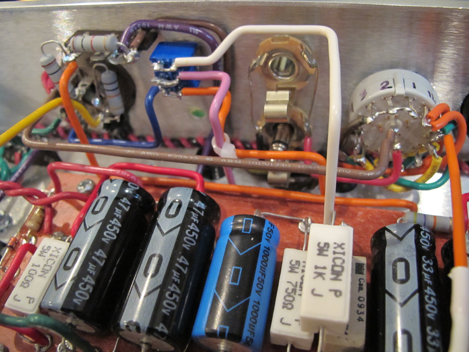Since EL34 & KT88 can run on the same bias as 6L6, I left the stock set up in there i.e. 750 ohm for 6V6 and 560 in parallel with 750 for EL34 / KT88.