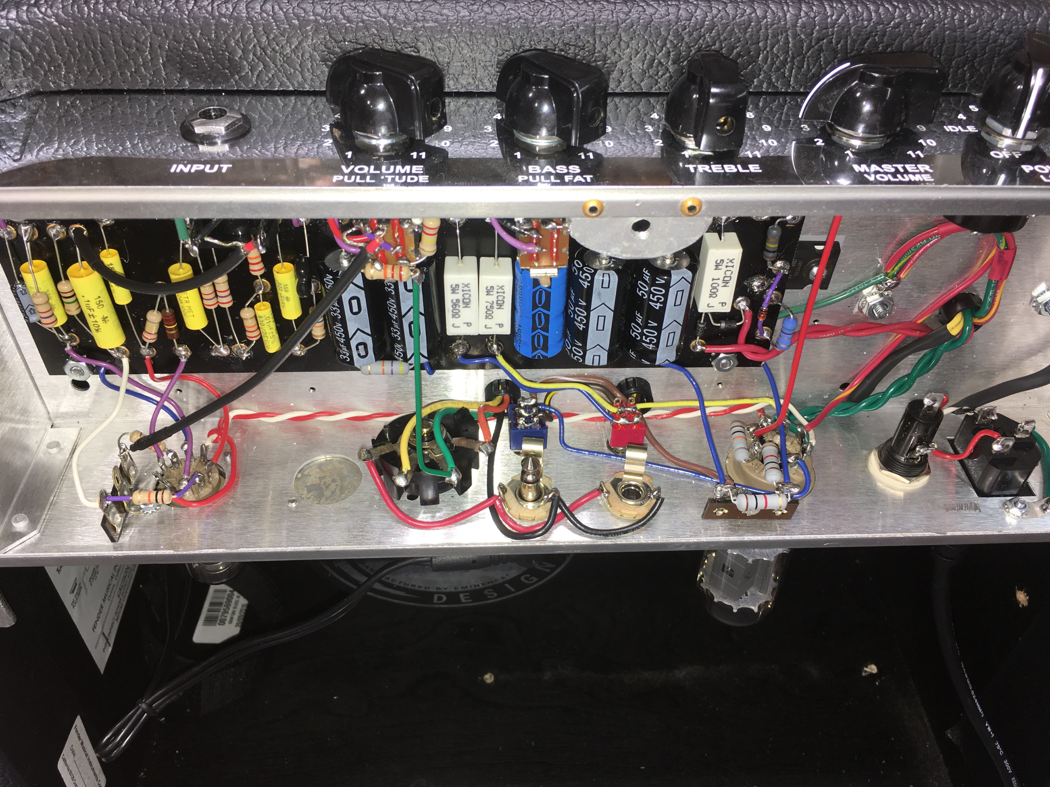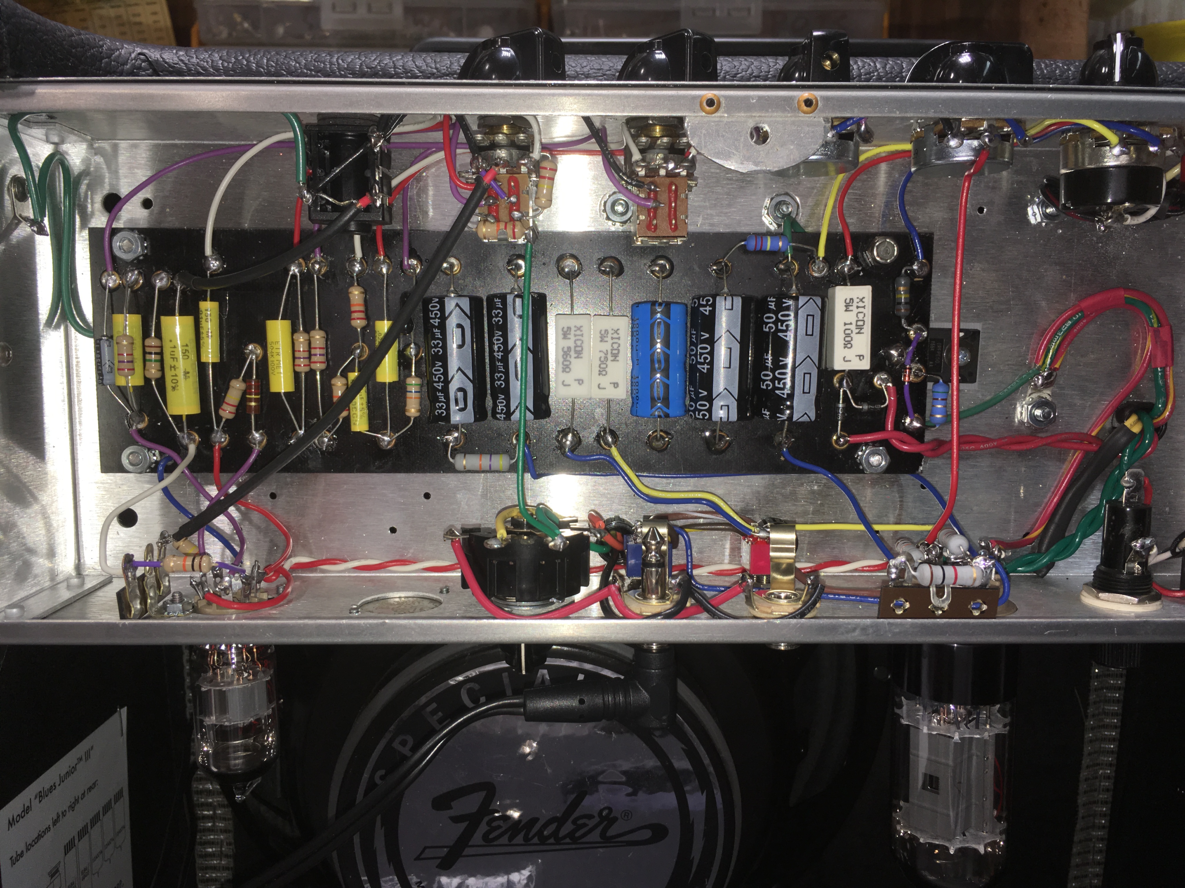 I ordered my tramp a few weeks back. It arrived right on time. I didn’t get started for some time due to the hurricane we had here. Ive built quite a few amps over the years, the last amp I built from a kit was the first amp I ever built, maybe 14 years ago. I decided to give this one a go after reading all the good things about it and listening to the sound clips. I have to say I was very impressed with everything about the kit, from the packaging to the part selection to the info provided. The documentation that comes with the kit is extremely detailed and very well organized. My hat is off to Stephen and the rest of Trinity for putting together such a great package. On to the build, some time back I got a good deal on a Blues jr from a friend, its an ok amp for what it is but it soon came time to start modding it. Well the latest mod was to put the Tramp into junior's cabinet. I knew it would take a little work making brackets & tapping holes but it worked out real good. I wanted to keep it as stock looking as possible. So I now have a Tramp jr. That to even a trained eye looks like a stock blues jr. But the tone & the feel, well it’s a world of difference. Myself I would not consider this a "beginners" kit, even though it only has 2 tubes it was somewhat of a challenge & ive built my share of amps. Doing things in the correct order is critical to getting it done neatly. The amp fired right up and sounds incredible, I love this amp and I have only so far used the 6v6 that came with it, I have plenty of tubes to put this amp thru all possible combinations. Of course the life blood of any amp is the transformers and it is obvious that the ones provided with this kit are exceptional. One of the things I read while researching this amp was "there is not a bad sound in this amp" and I now know it to be true. low volume, high volume, distorted, clean its all fantastic & with astonishing clarity & note definition. So thanks Stephen & everyone on this forum, I think ive read every post. I am one happy Tramper. . . Joe