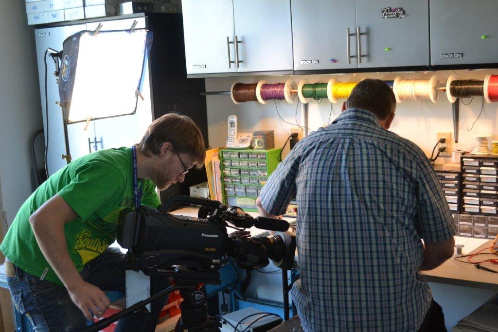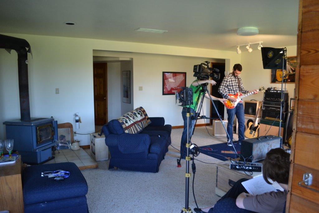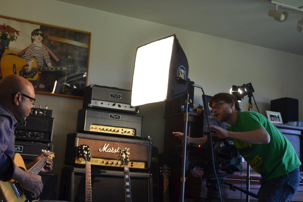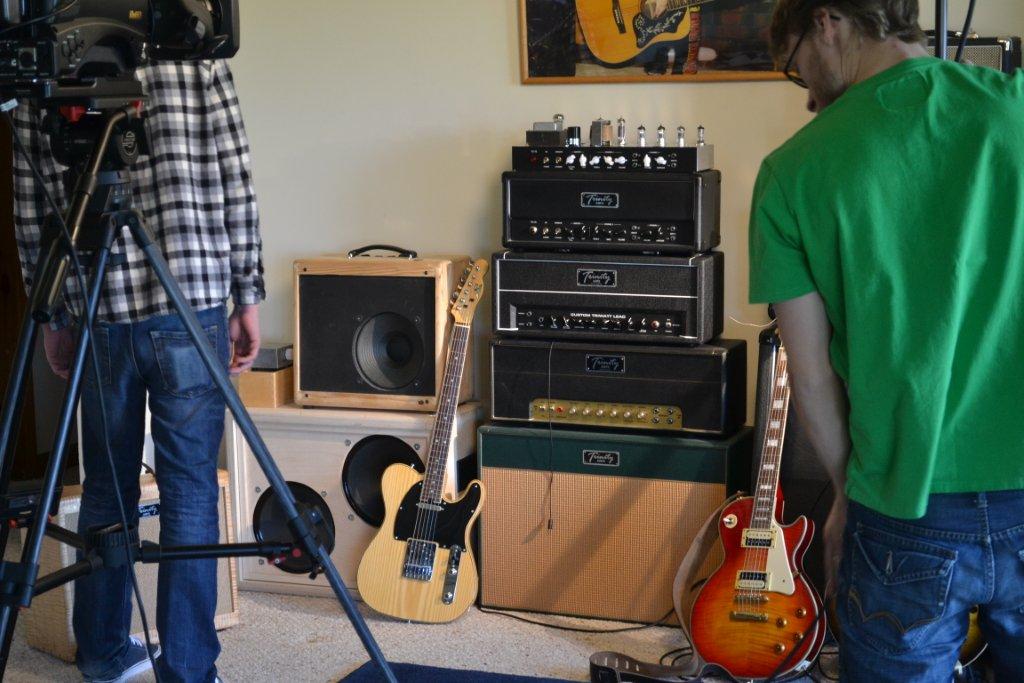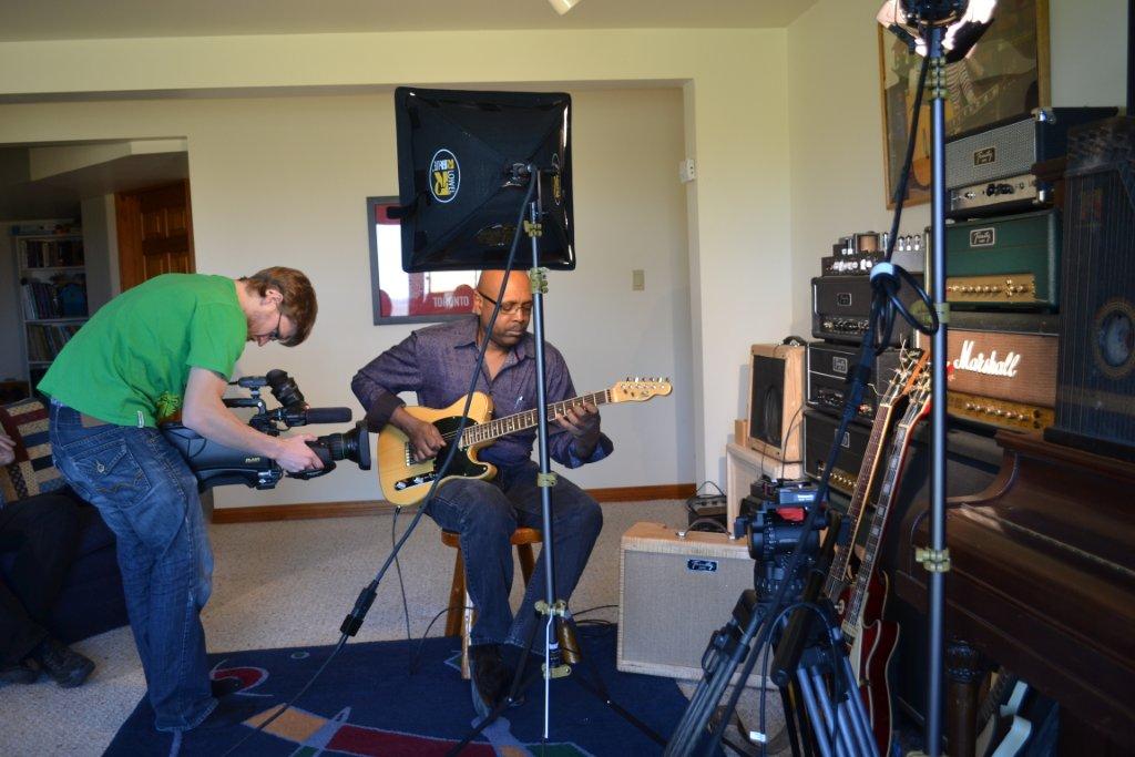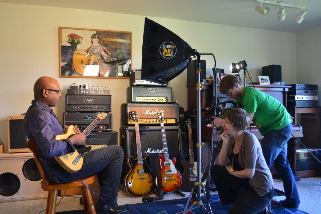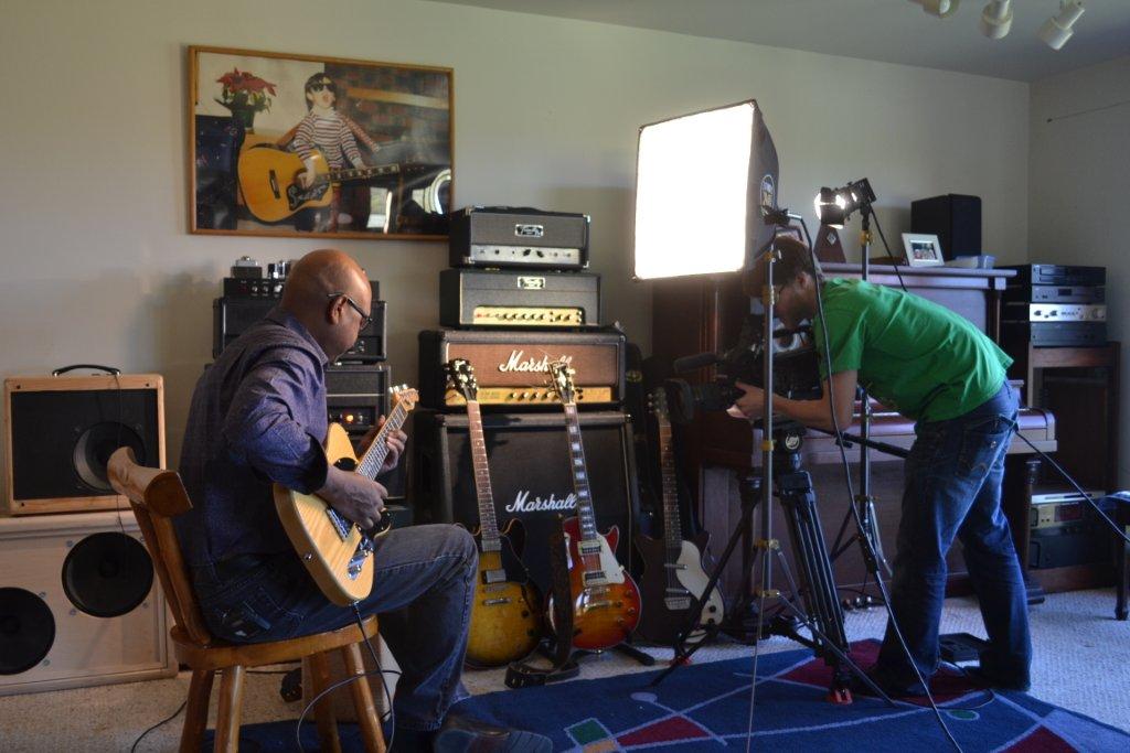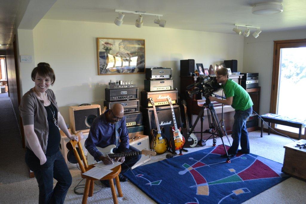 They started out filming in the shop by shooting some of Andrew, Glen & I doing some amp building. Then they moved to interviews of all three of us in the "Music Room". Then our guest musician, Lawrence Bethune (