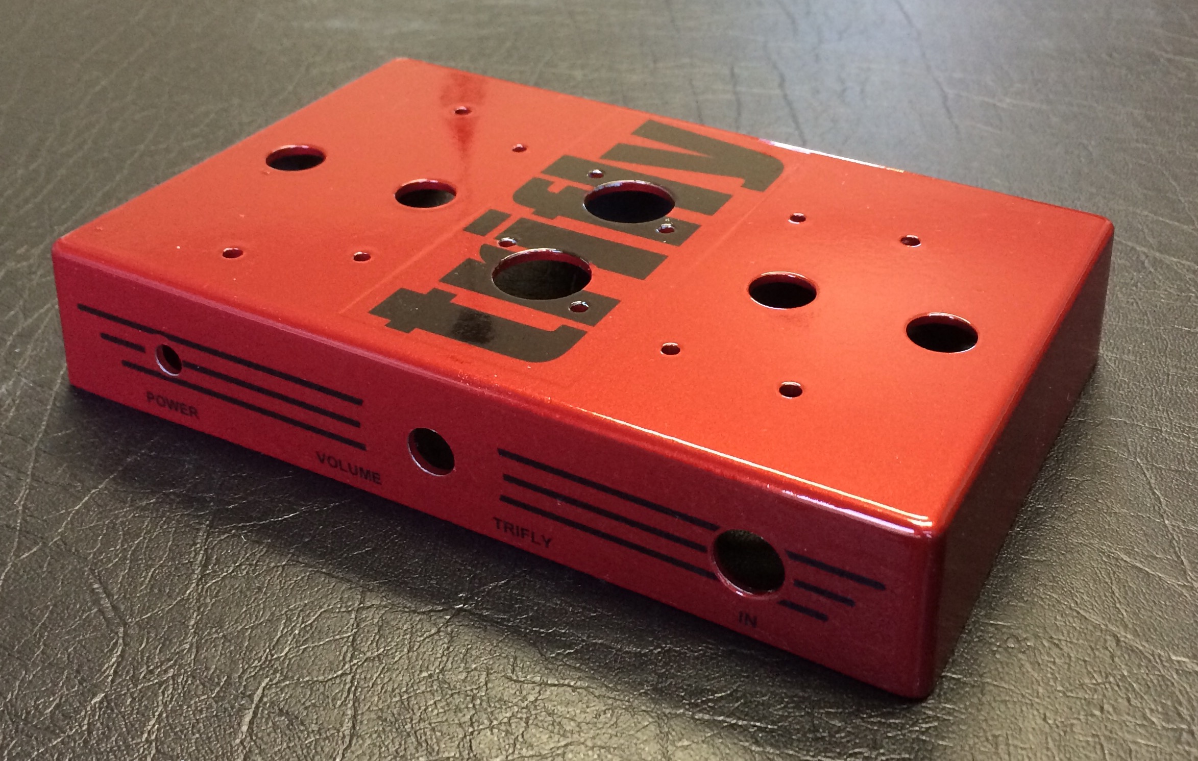 This is is a picture of the prototype new enclosure with a large trifly motif on it.
