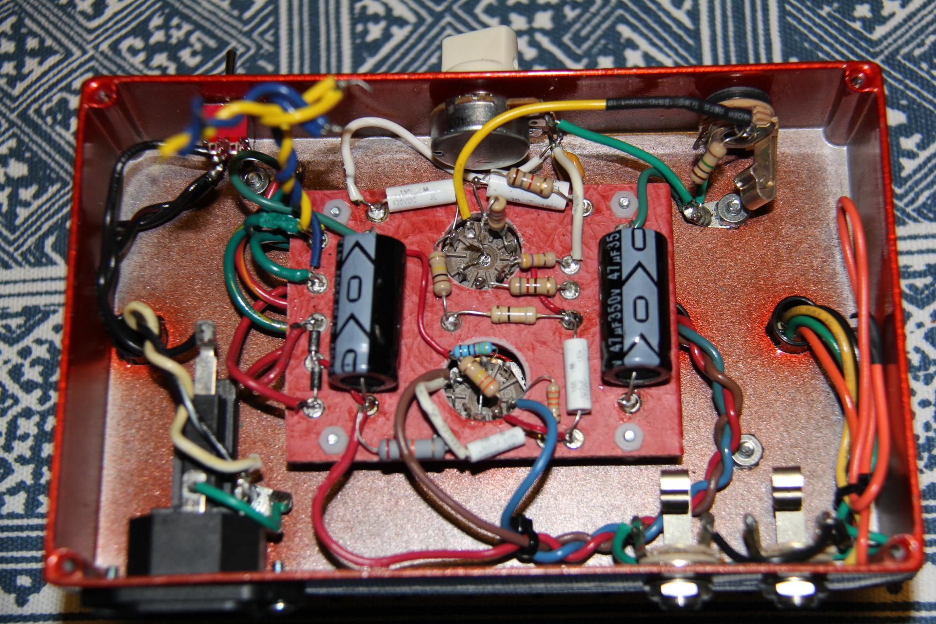 All-in-all sounds really nice for such a small package; very little hiss even at full volume despite my imperfect soldering and inattention to cable routing. Tubes start to break up with the volume around 11 o'clock and sound really good to me at about 2.