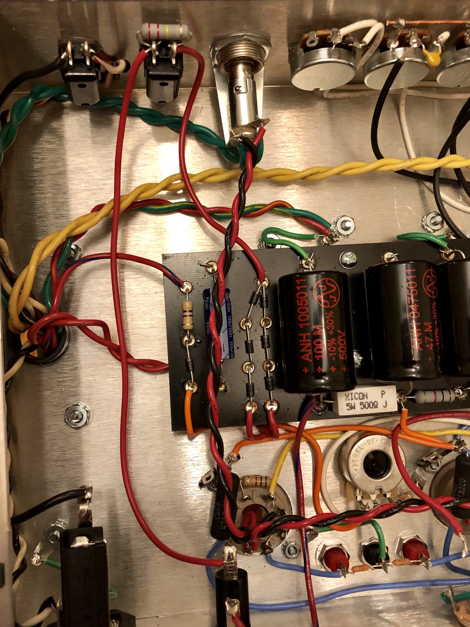 I just built up my OSD and I was running through the final testing phase. I can’t seems to get any voltage at B+ (100uf cap / 5w 500R) junction. The relay works great. Heater wires are correct on the tube sockets. The 2 red wires (secondary) read 333v each, they seem to progressively step down with each diode in the rectifier section. Where they connect I’m getting 0 volts... bad diodes? Anything past that point gets 0 volts. The diodes seemed to test ok on the forward voltage.