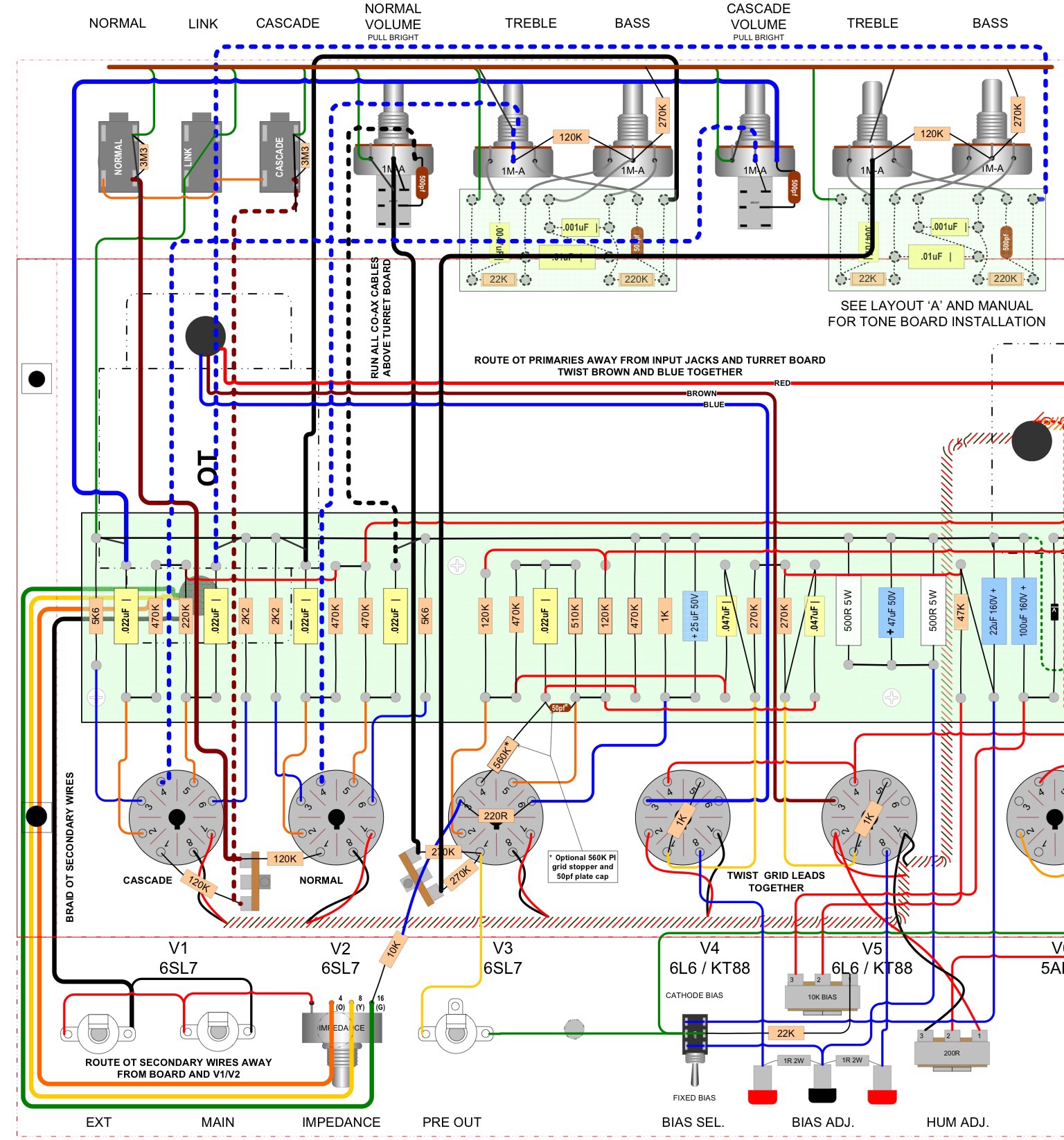 Important Note: Ensure Output Transformer Secondary wires are routed far from the input to V1 & V2Attachment: