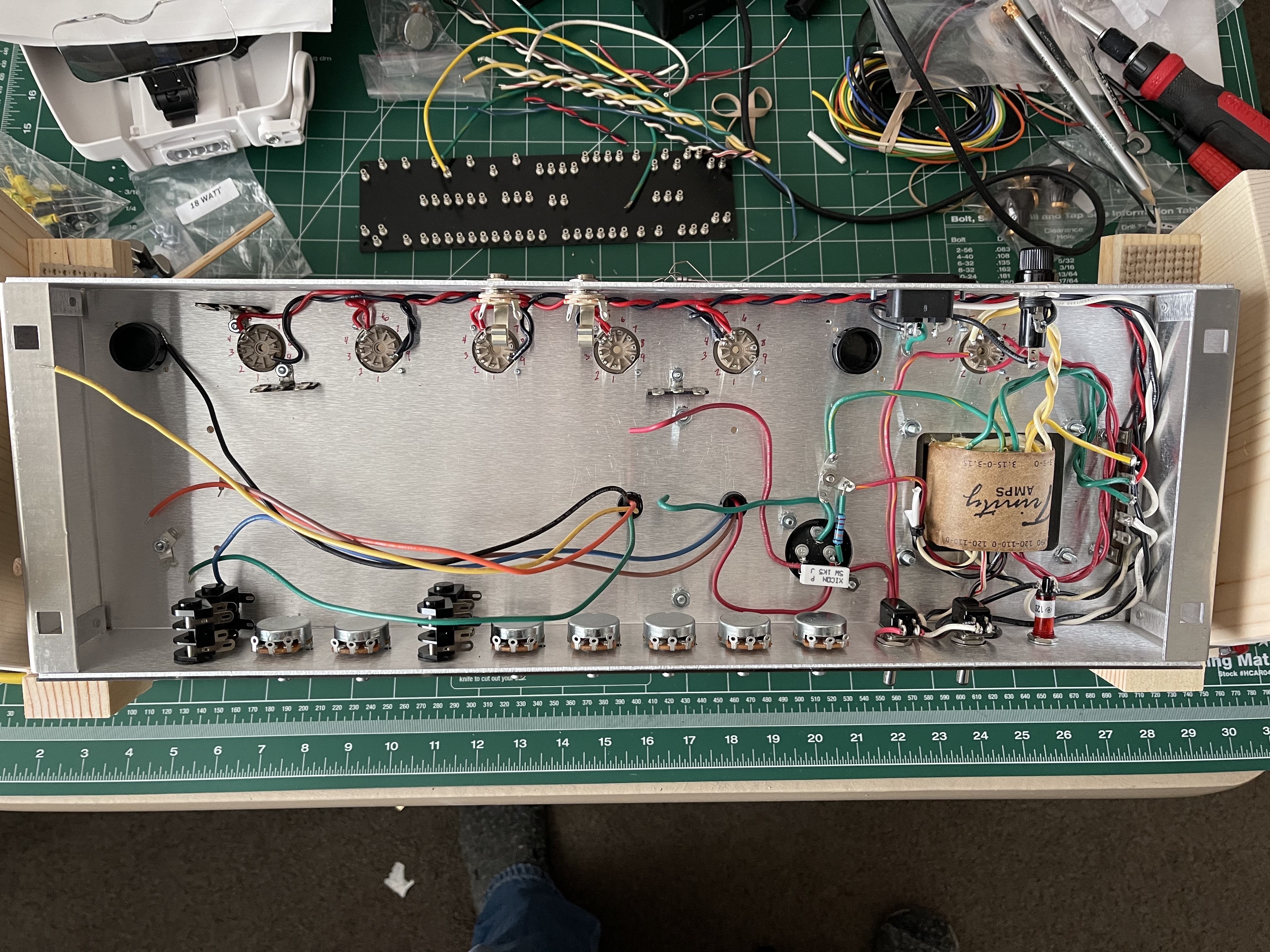 The next step is building the head and speaker cabinets. That might take me a few weeks but I will post pictures in this thread when it's done.