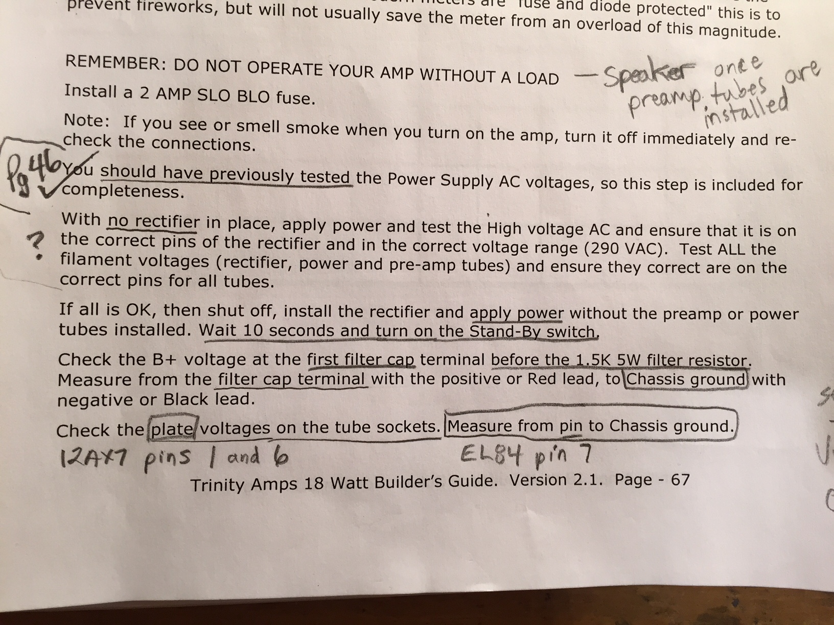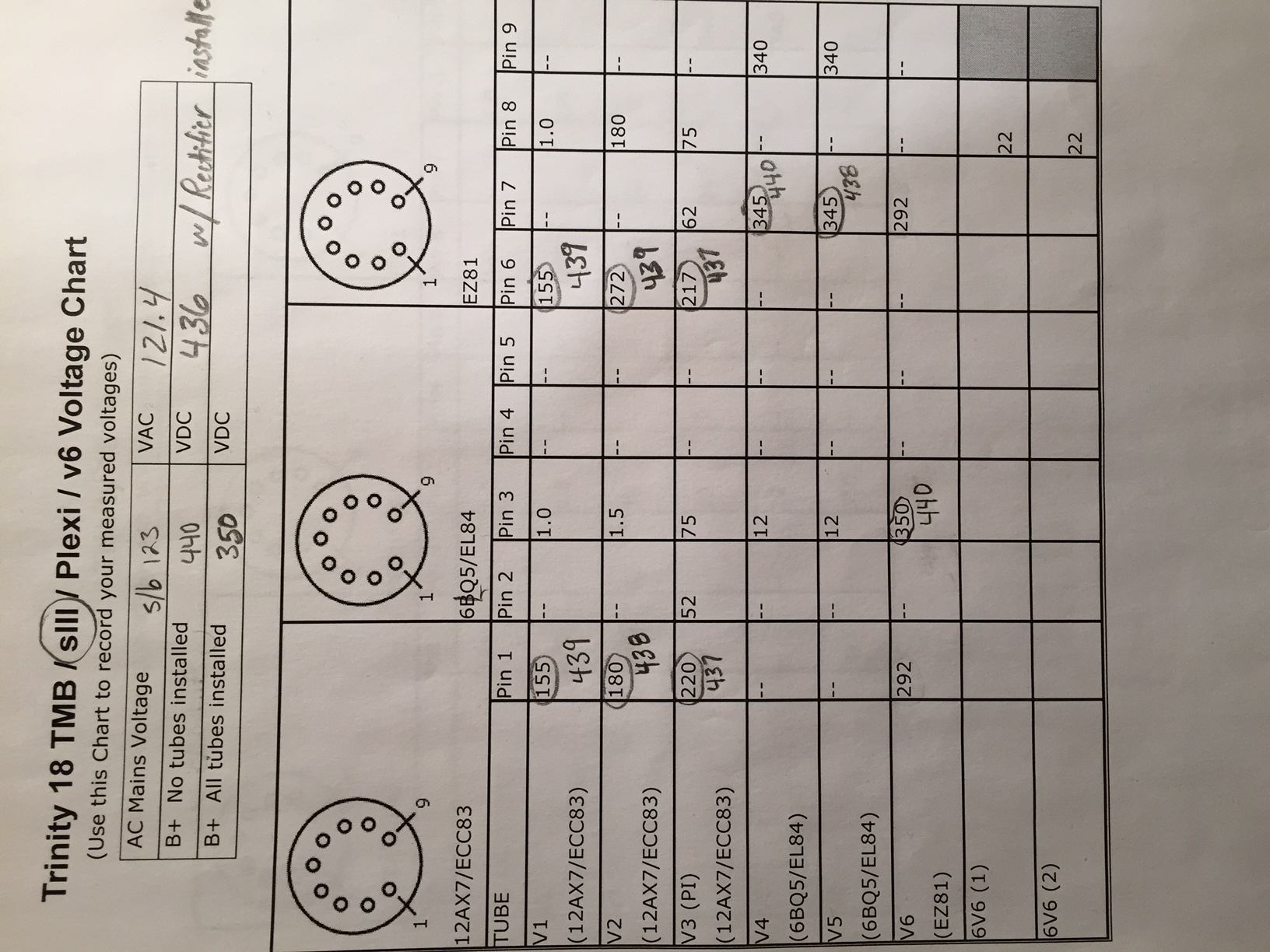 For some reason I am getting my B+ voltage on the plate pins of all power, PI, and Preamp tubes instead of the ballpark values shown in the Trinity 18 Voltage Chart.
