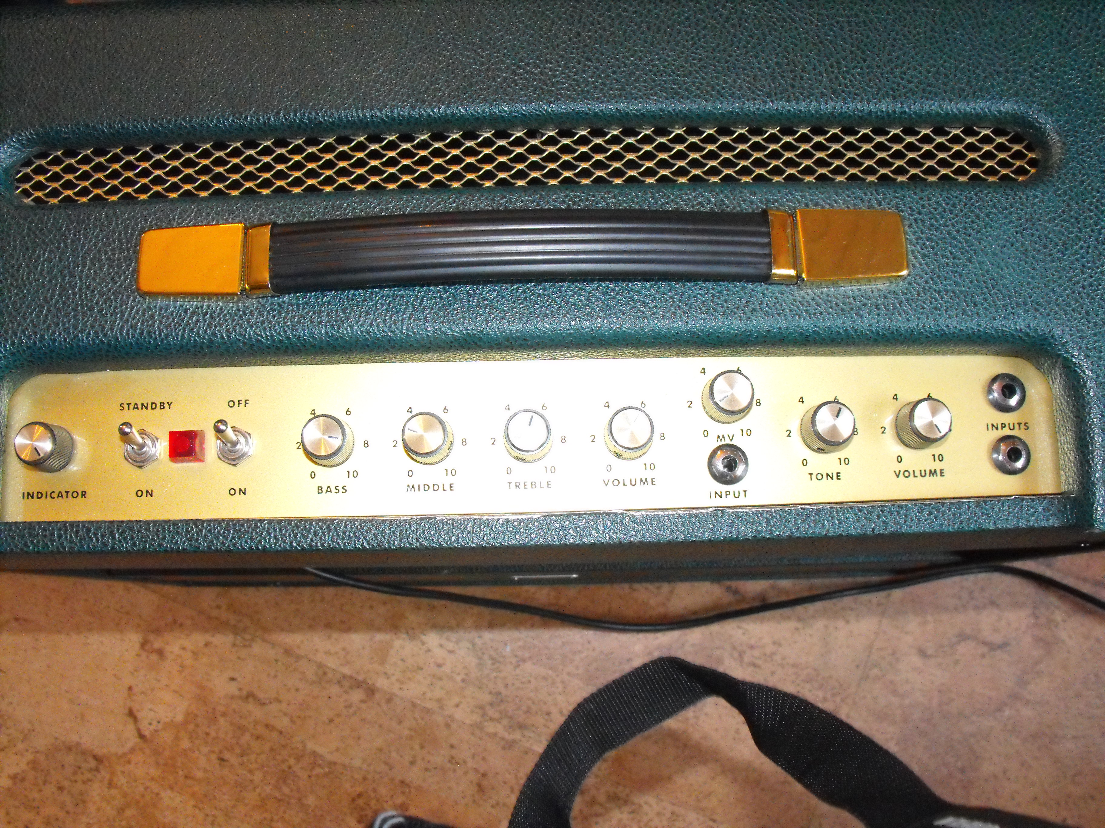 Not sure if this is the right place, but I figured in a forum dedicated to this amp, I'd surely get answers. Anyway, I'm not a builder, just a player. I just brought home a 1X12 Trinity tmb combo in green tolex, which I traded some other gear for on a local swap site. Having never seen or played one, I'd like to know a few things about it. It has a 12' Greenback in it. The layout of the face plate from left to right is: Indicator? (assume this may be an attenuator), stby, led, pwr, B, M, T, vol: then a single input with a MV above it (assume this would normally be another input?). The next channel has tone, vol, then two inputs. On the bottom of the amp it has two jacks labelled ch1 and ch2. What are these jacks for, does anyone know? Are these where you "jumper" the channels, or some kind of mod for a switch or something? Also, on the second channel (tone and vol.), are the two inputs the same or do they provide different tonality? This amp looks really classy in the green tolex, it has an old style marshall plate on the center front panel, and is pretty pristine: but I am the third owner, and the fellow I got it from was unsure whether it is from a kit or was ordered assembled. Is there any way to tell? I'm not really even sure what model this is (tmb, s111, etc.) nor whether it has been modded from the original design or not. I noticed a little noise/buzz from it as well when the vol is pushed, but I suspect it's nothing major. Anyway, as a newbie, if someone would be kind enough to fill me in a bit on what it is I've acquired it would be appreciated. I'm looking forward to getting to know it.