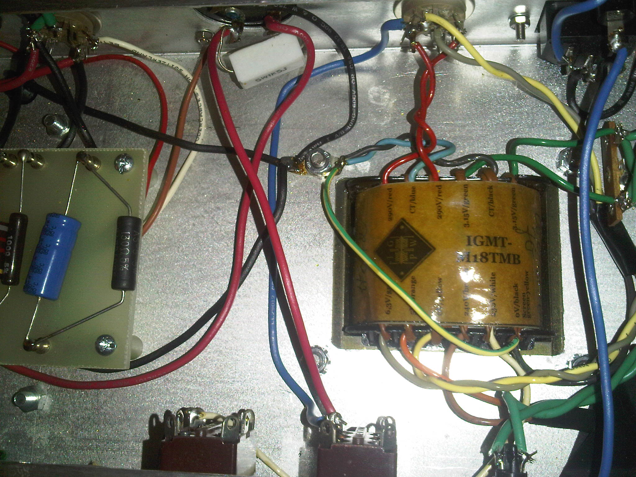 I first power on the amp. Everything's fine, but when I turn off the stand by switch, there is this hum from AC. It's not awfull but it's there. I suppose it comes from the power supply, since this hum is always at the same level, no matter how the volumes and master are set. The trannies come from Ingo Georges. I'm sure about my circuit, I've checked it several times before testing it. Cap can come from Ceri@tone, the other caps in the power supply chain are F&T caps.