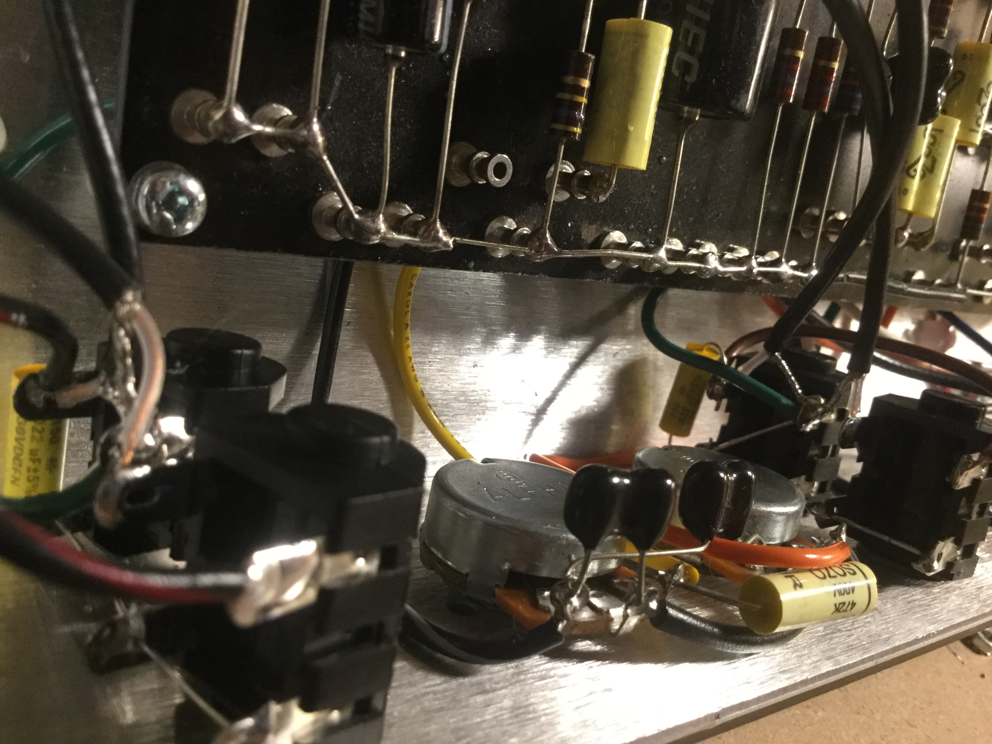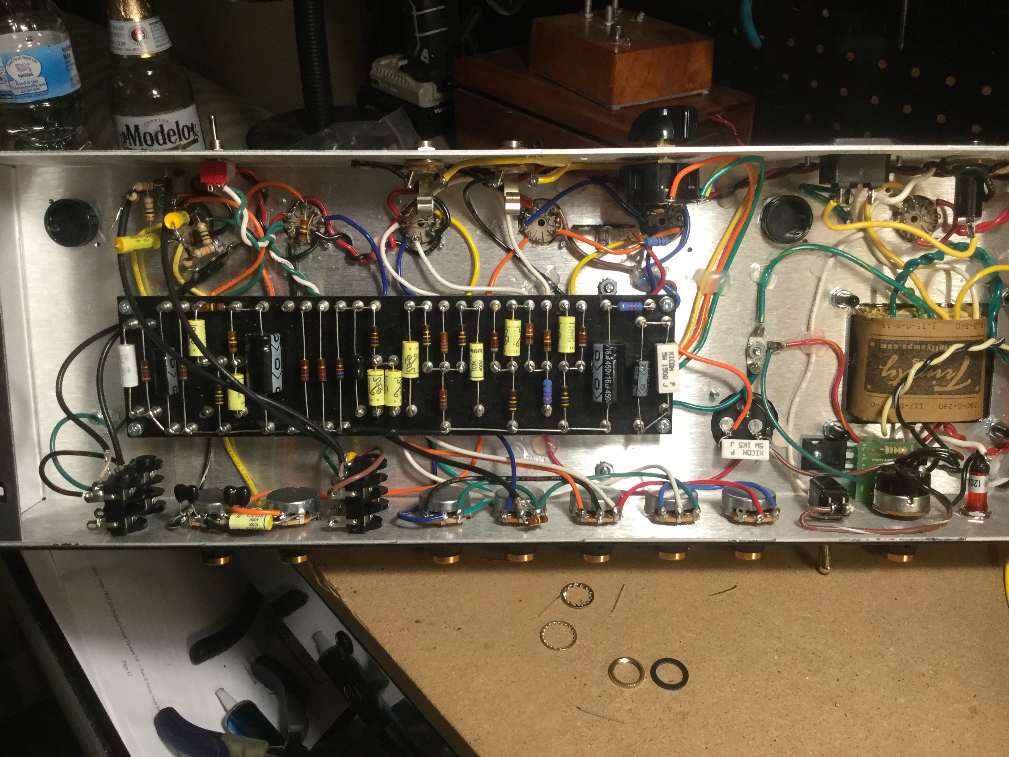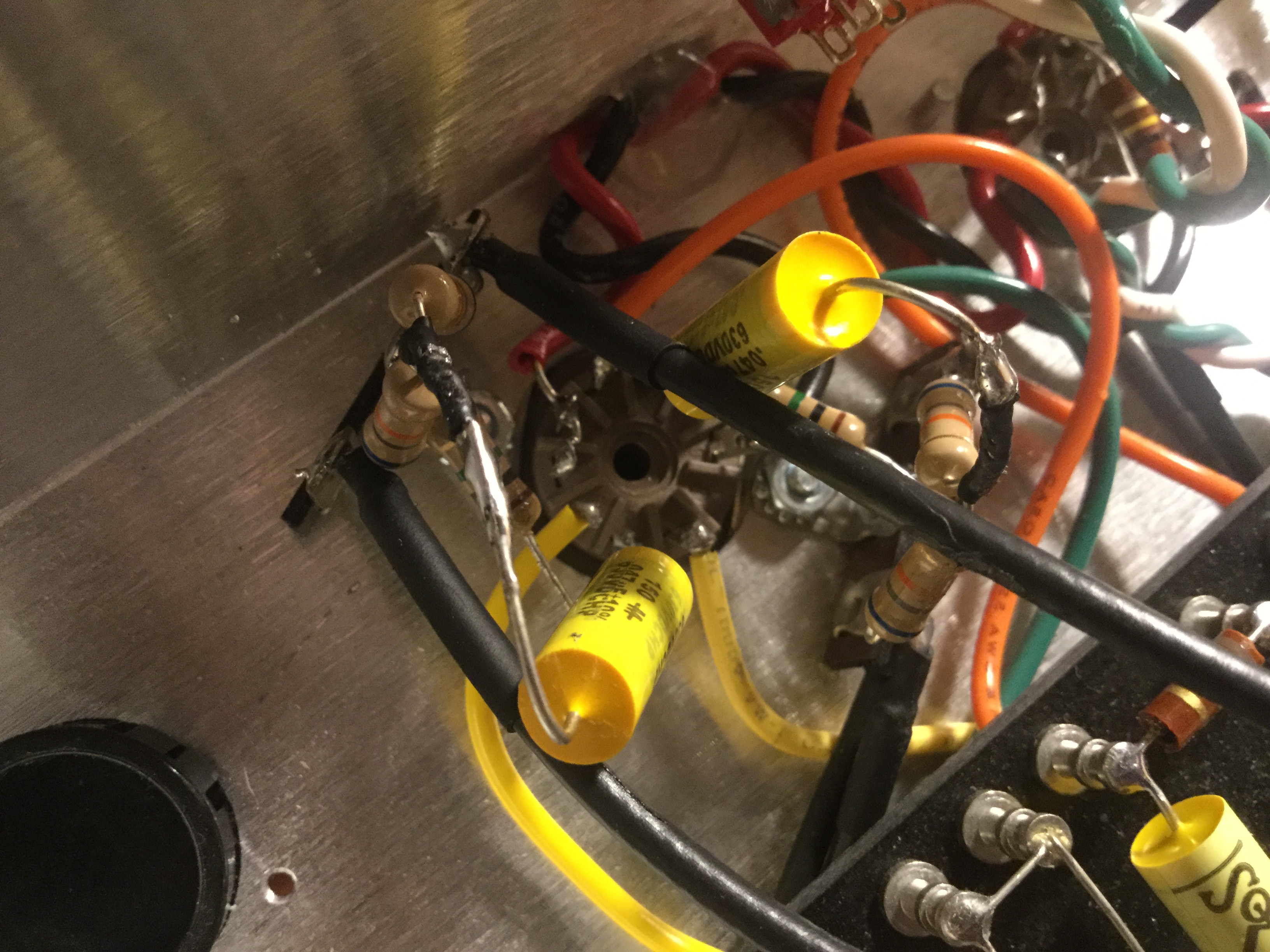 I finished my 18w plexi build this past weekend and it sounded great. I decided to install the full power VRM and went to test it out today. Upon my first test I had not switched the 1M resistors or added the caps between the 68k resistors and the tubes. Powered up fine but when I switched off the stand-by I got an interesting little lightning show in the rectifier tube and quickly switched it off. Rechecked and realized I had more work to do. Completed said work and still got a lightning show in the rectifier and then the fuse blew. I'm wondering if anyone else has had a similar experience. Photos added of the chassis and close ups of changes made (.047 cap added between 68k and v1 tube pins per layout, changed 1M resistors to v1 pins to ground per layout and added a .022 cap to the input jacks in place of the 1M's). I'm sure I could change it back stock, but I'd like to experience the VRM before deciding. Thank for the help.