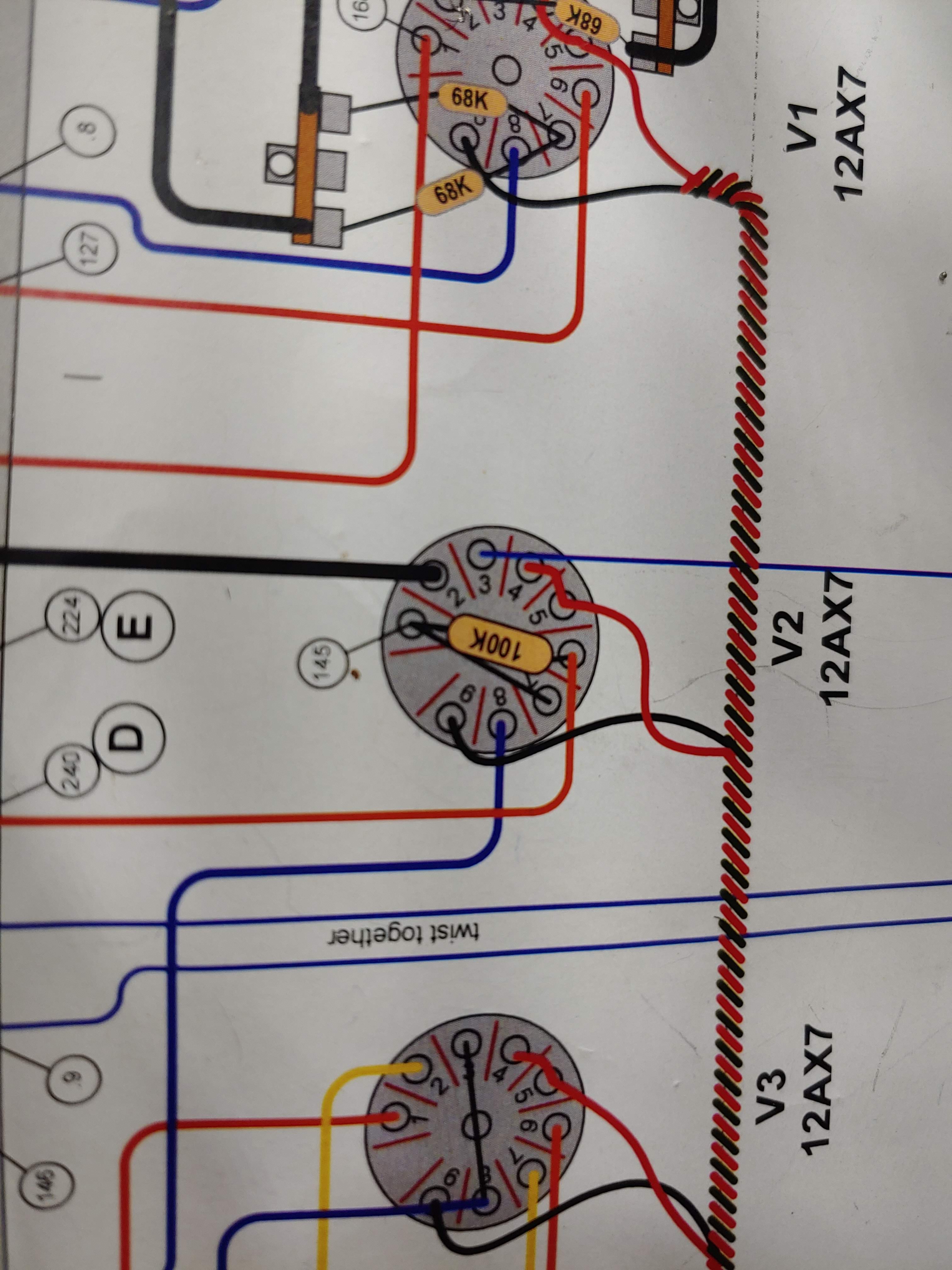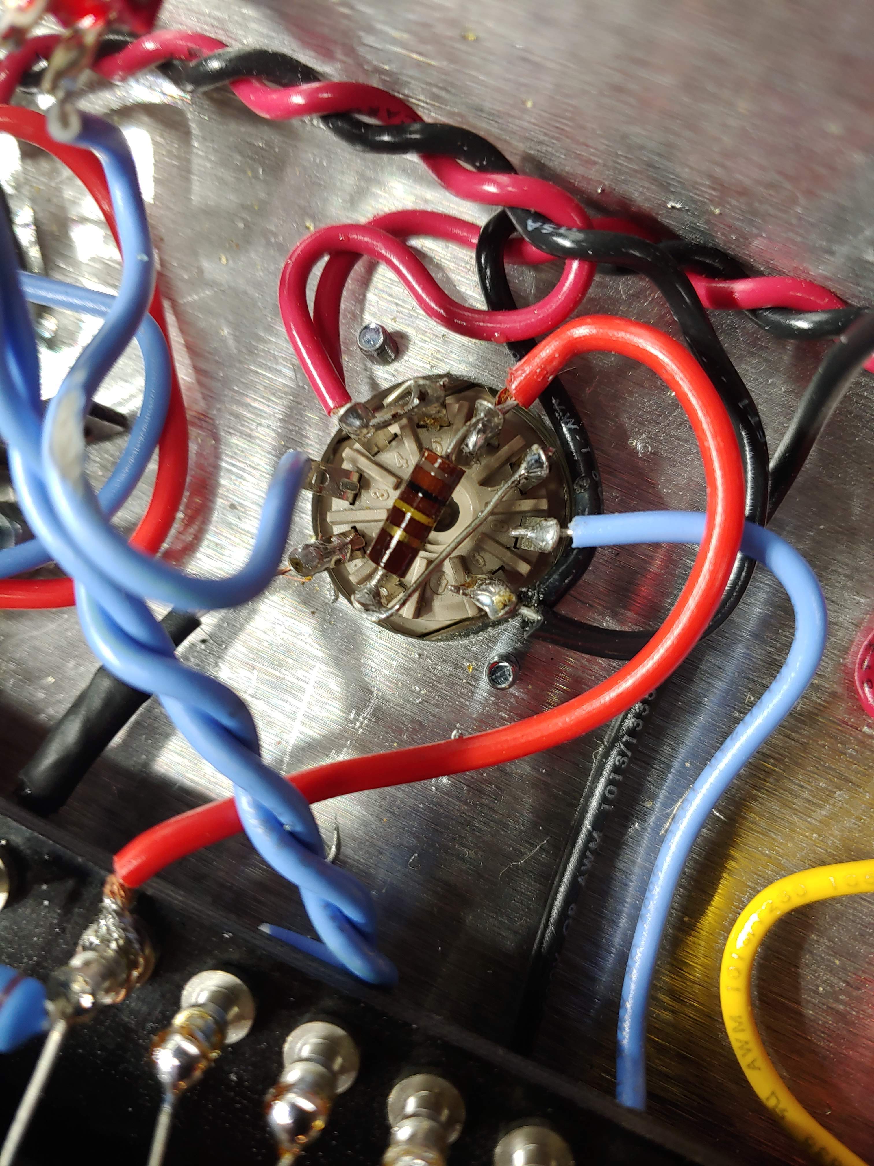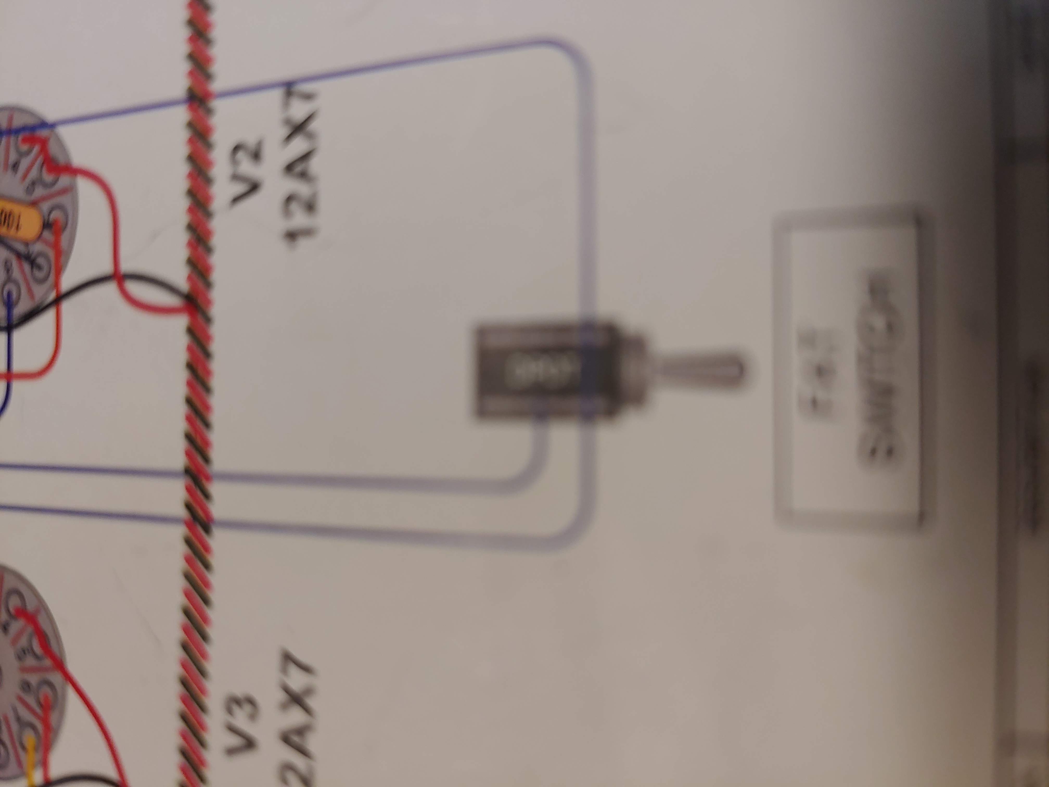 So... 2:30 AM... became obsessed with this thing... resoldered everything like 8 times... took alllmost every voltage reading I could think of then decided to check a few more at random... Noticed that the "Fat" switch wasn't registering.09 volts like the schematic showed.. and then I took an even closer look at the switch trying to figure out if maybe I wired it upside down or shorted something out with my over soldering...