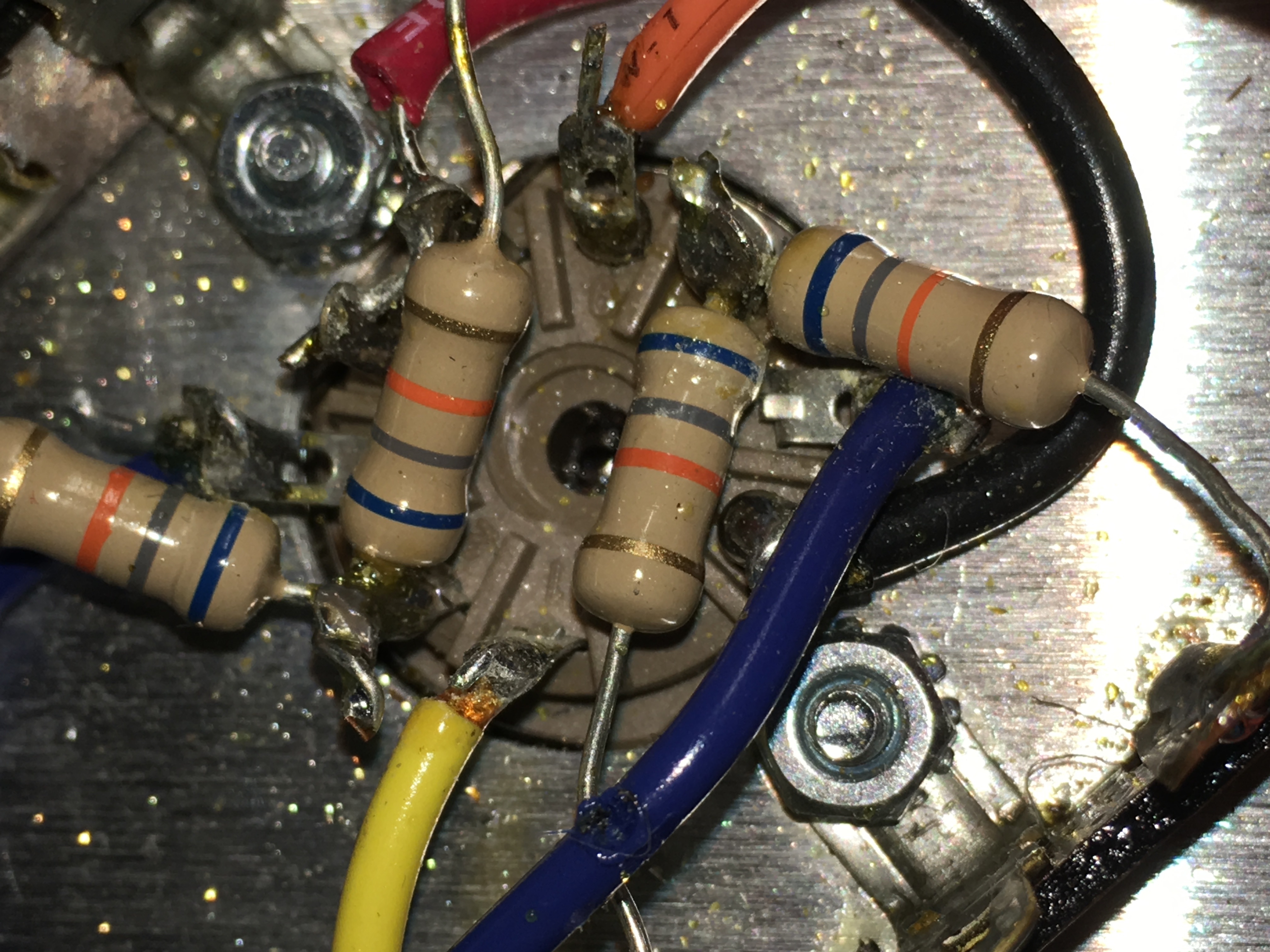 took a picture of the power end of the turret board. The R-21 resister shows a resistance of 2166 ohms. Added a photo of the regular channel input jacks disconnected from the chassis. A moot point if there is a short.