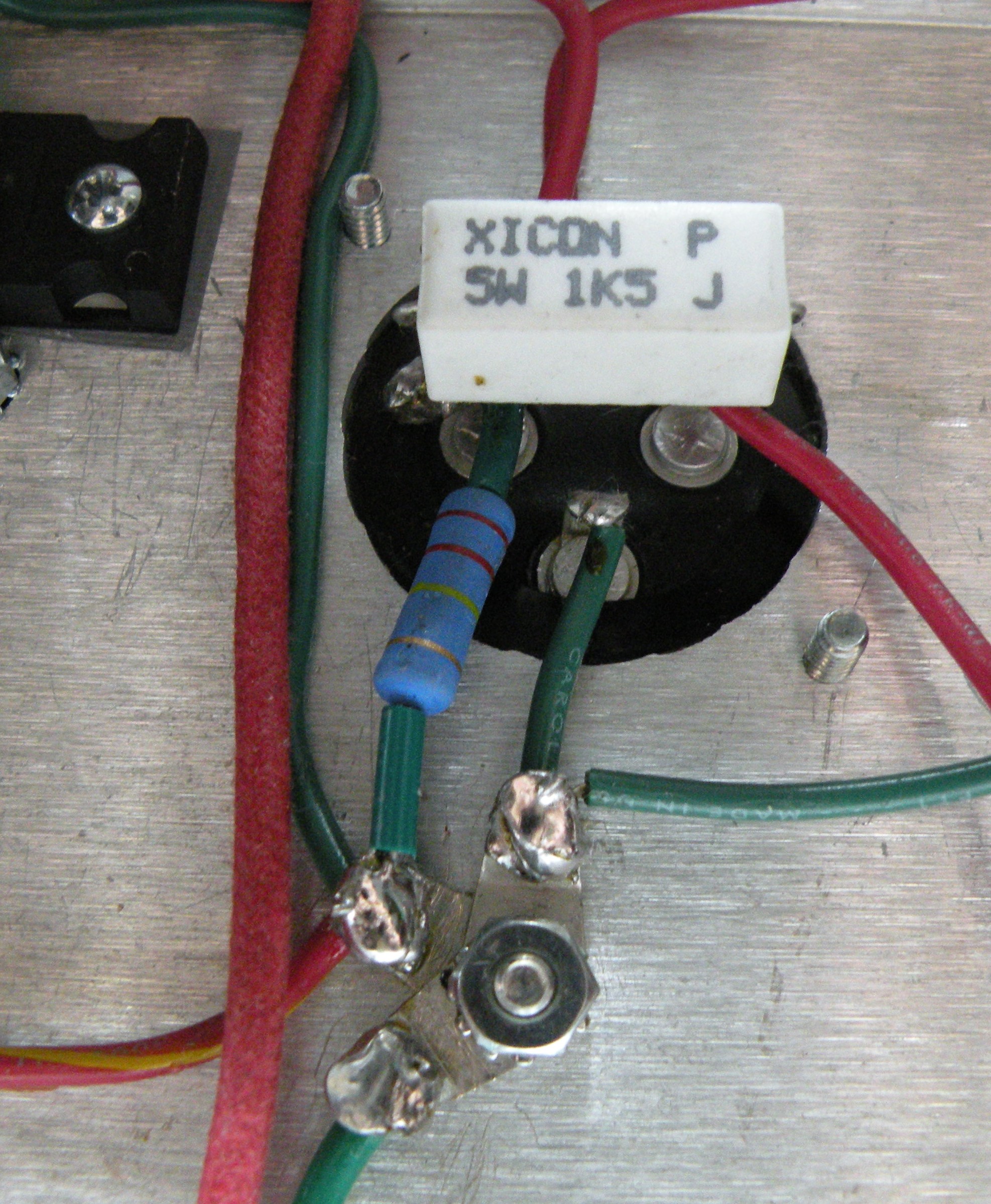 Fifth, I added a permanent 220k 3watt Drain/Bleed Resistor as suggested as an option in the manual. I installed the resistor across positive B+ side of the Canister Capacitor and connected it to power ground star. [See this thread for more info: https://trinityamps.com/phpbb/viewtopic.php?f=7&t=3415 ]