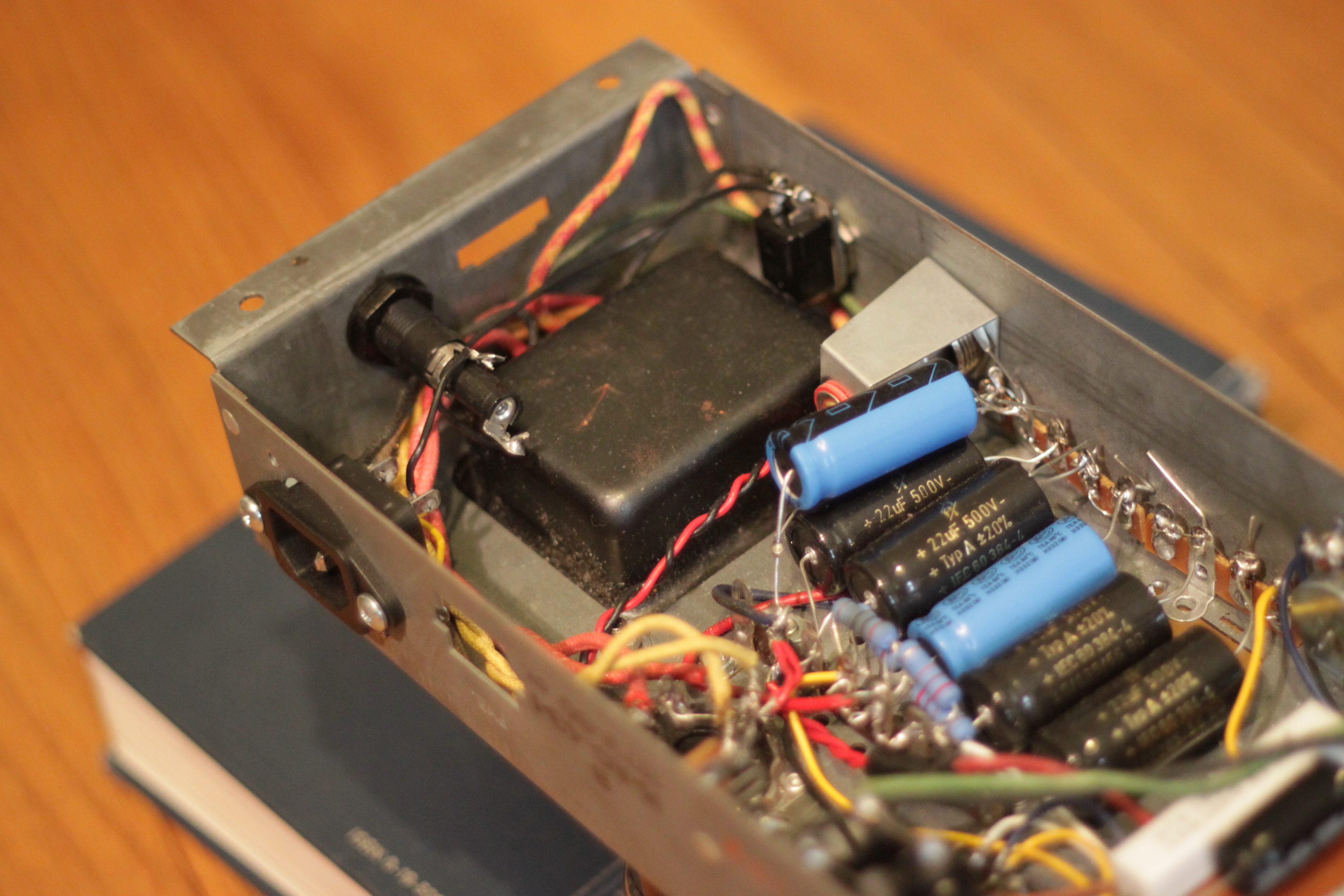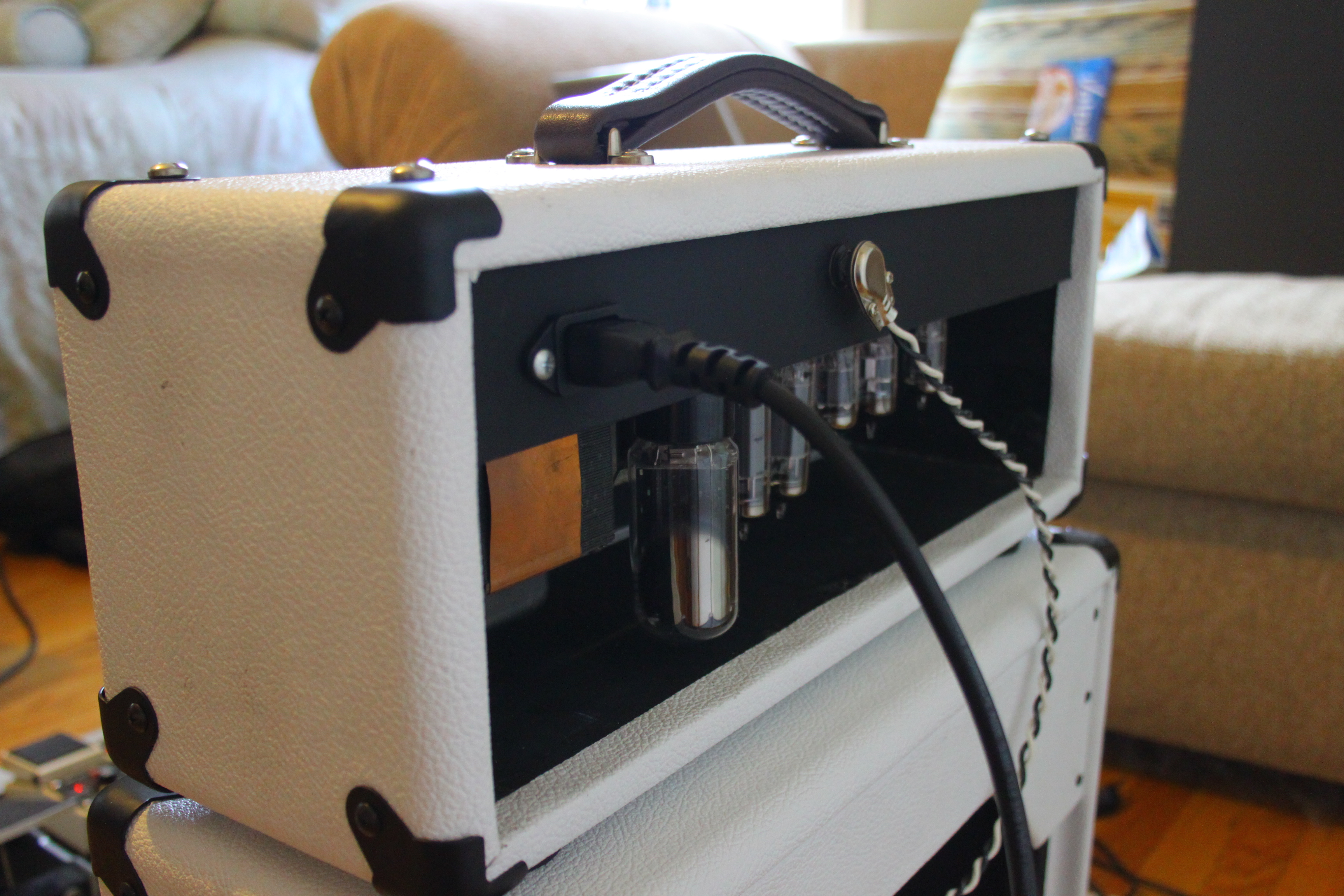 really cramped in there. This was also my first amp build, so keeping everything neat and pretty looking didn't turn out as well as I had hoped. But everything sounds great. The amp is very quiet, which I was extremely relieved to hear.