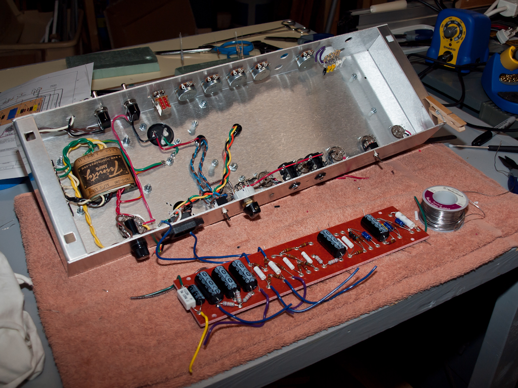 I've been a little slow updating the progress of my TC-15 Kit that was started after the first of the year. Anyhow... I completed the build of the amp in the middle of April and it fired up without any smoke (which of course is a good thing)!!! After a little time diagnosing a very low volume feedback like squeal on the EF86 channel (which turned out to be a cold solder on the signal wire on the high impedance input) I was up and running. Wow how fun this project has been. Recently completed my cabinets and installed a 12 inch WGS Reaper. Need to do the grill cloth and finish a few details on the head cabinet but I am truly enjoying the variety of sounds I can get out of this!!! Clean to Dirty oh boy!! The EF86 loves pedals but I just run reverb about 1/2 of the time. I'll have to figure out the picture thing so I can post up since I learned so much looking at the ones on the forum. Thanks to all of you and the fine folks at Trinity for making such a fine kit.