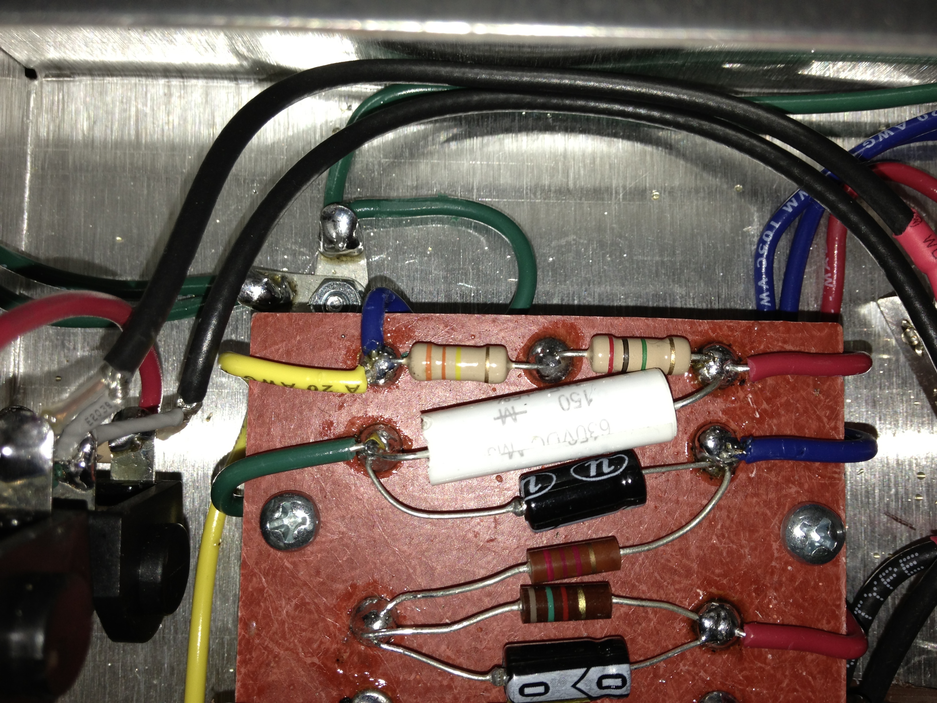 it's got a red turret board. The amp makes noise when i touch some of the pin with my multimeter. is it safe to plug a guitar in to test?