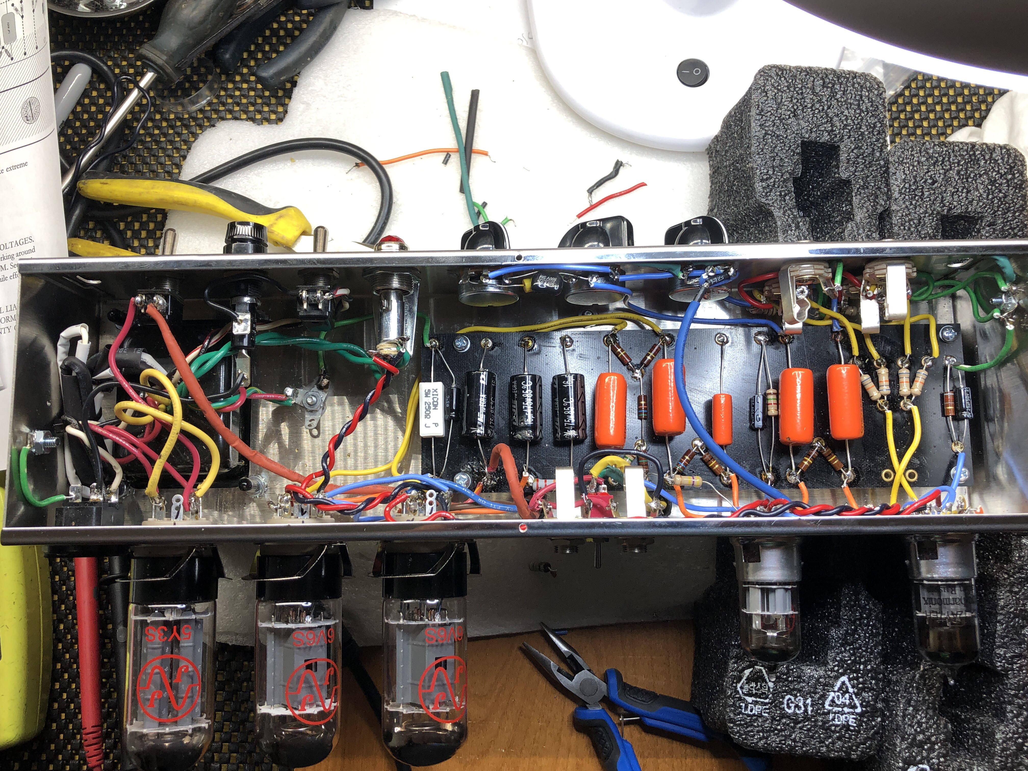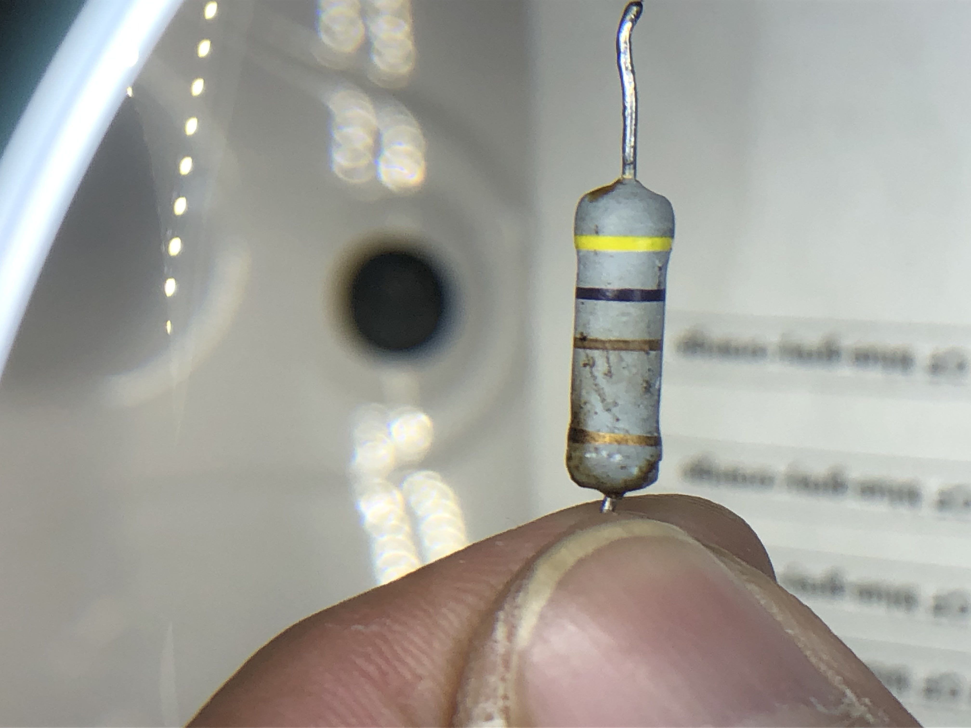After the voltage check, plugged guitar there is output coming out of speaker, increase volume but volume the same to the max just the distortion is changing. Volume is not there. What I noticed was there was a smoke coming from the connection of output to the board, the resistor start smoking, check connection ok and notice it has different colour code suppose to be yellow-violet-red, what I have is yellow-violet-brown. I remove the resistor and measure the resistance 4.63k ohm. Is that the right value for 4k7 2W and the right resistor for that circuit? NOTE :The bottom pic is the location of the resistor that I remove, I just place the part and not soldered