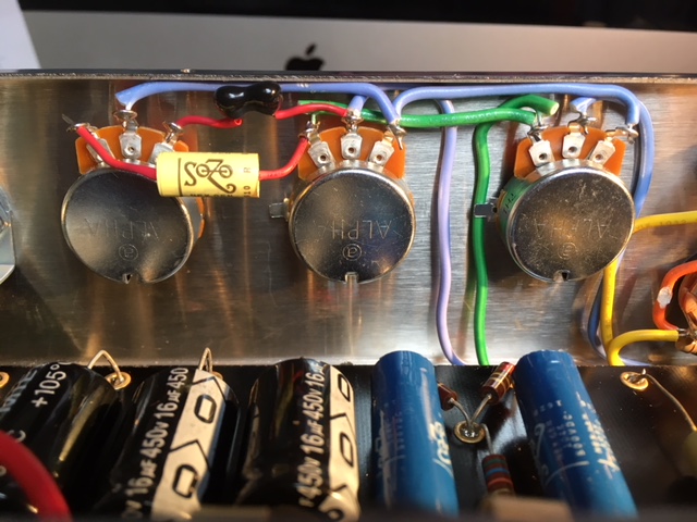 When V1 (12AY7) was removed the Hiss was gone, but substituted by a Hum. This hum becomes more noticeable the more I turn up the tone control.