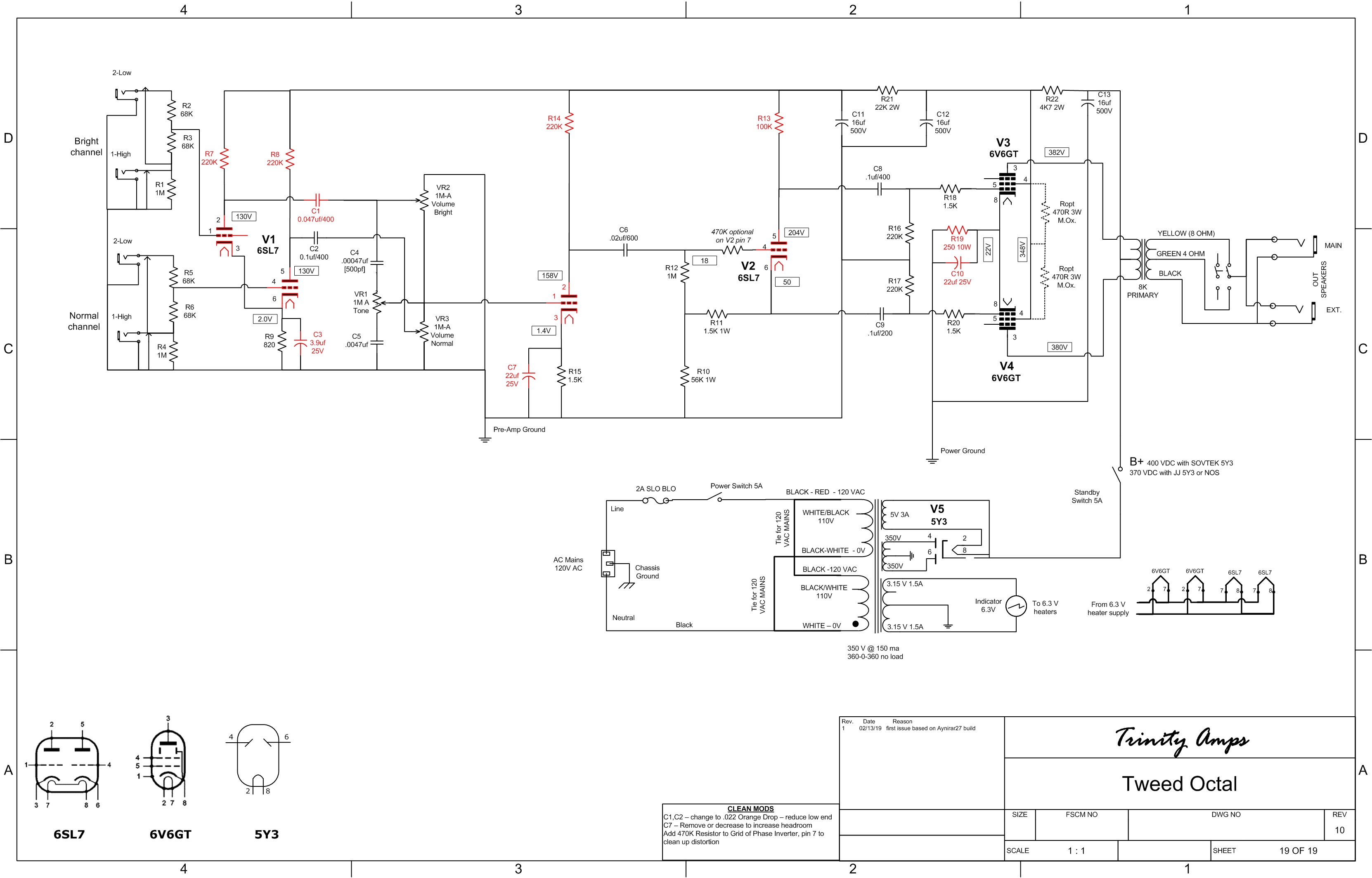 The biggest change was a pre pi master volume that I snuck in to the bright low input. It may or may not stay, but for right now it’s been useful. I also wanted a little more “oomph” out of the 6SL7s so I goosed the plate and cathode resistors a bit.
