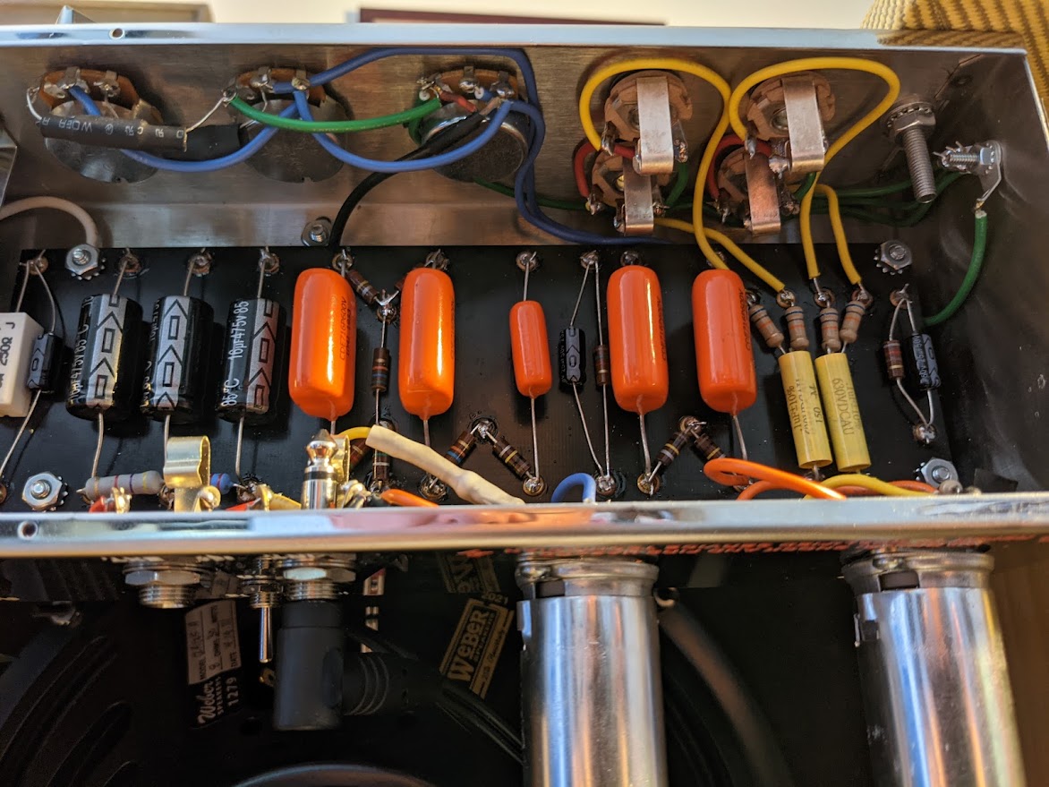 I’m hoping someone can help me isolate and solve a mysterious, and likely quite dangerous, shorting (?) issue with my new Trinity 5e3 build, with VRM. Quick background: I don’t have much of one. This is my first amp build (I’ve built some pedals and patch cables, and solder things in and out of my guitars pretty routinely, but that’s about it), so I am very much a novice. But I took my time with the build, have read (and re-read) all of the documentation carefully, and took care with my soldering (I also consulted this board frequently, which was a great help). Initially, I thought this approach panned out—all of my readings looked pretty good, and the amp started up on the first attempt, using a power strip in my studio room. VRM worked like a charm, and the amp sounded great. So far so good—I was very much enjoying the new amp, and plumbing the tonal mysteries of its interactive circuitry. I’d had probably had 10-15 hours of issue-free playing time (the amp started up perfectly every time, etc.). And then things took a turn.