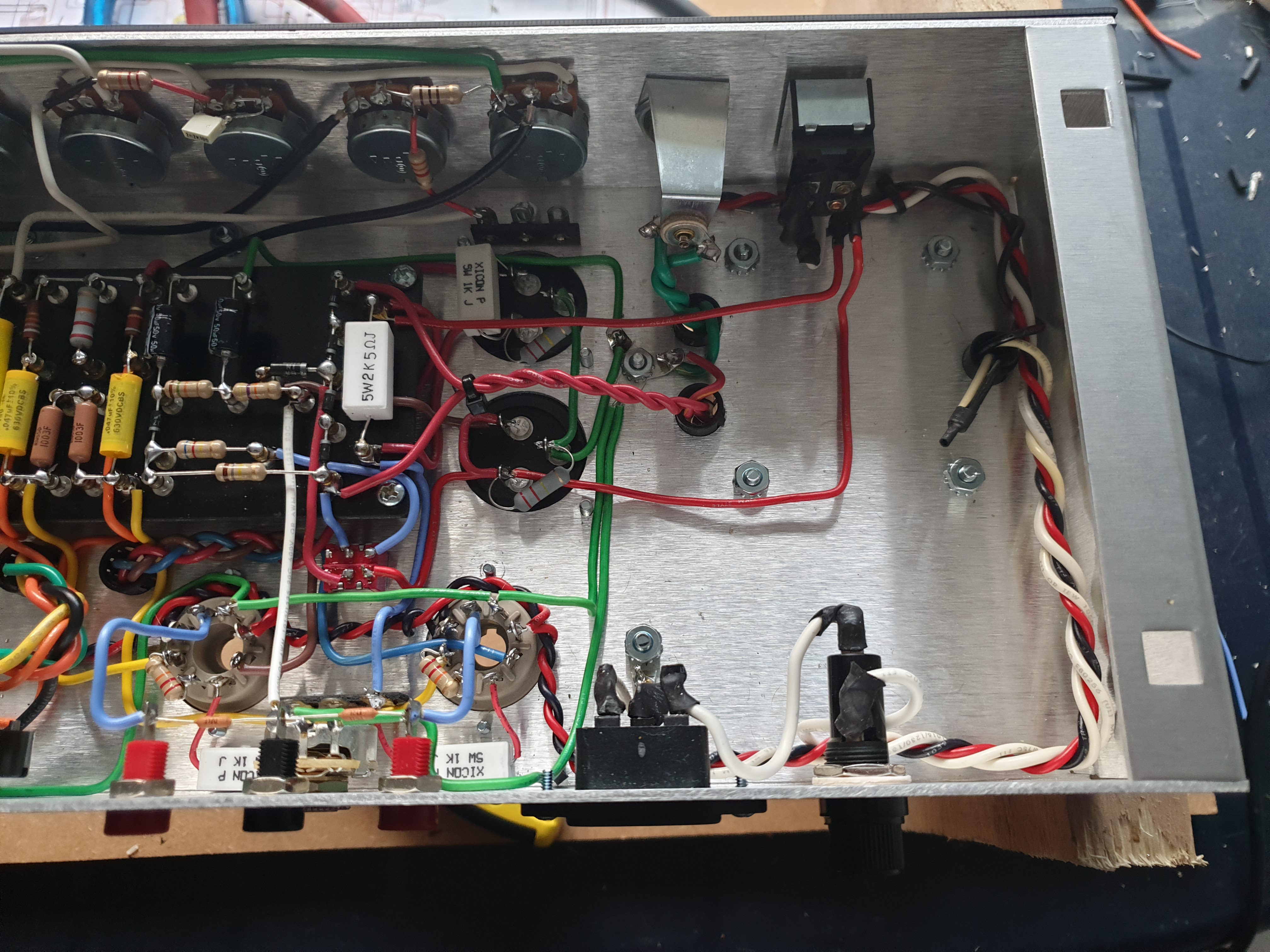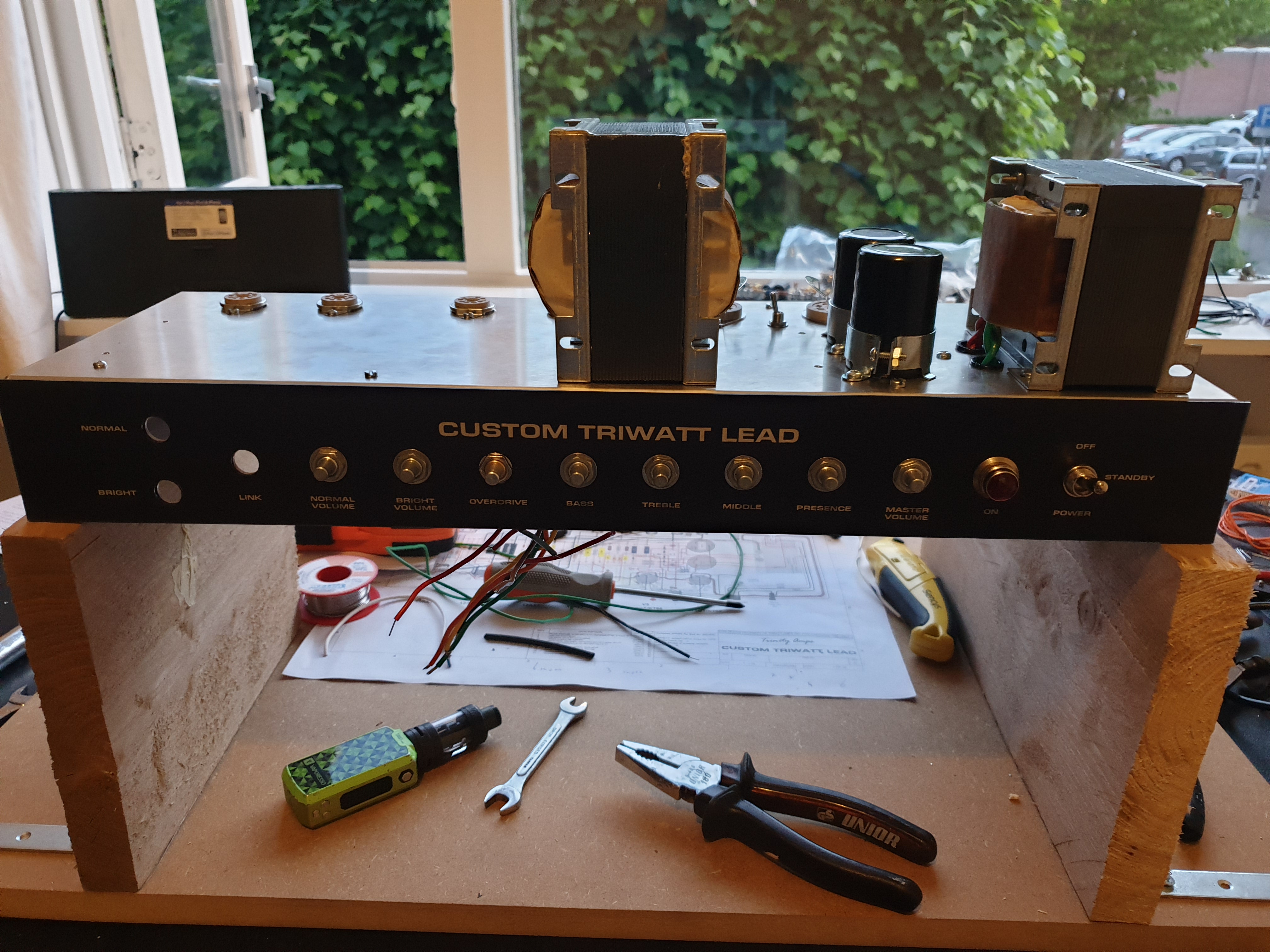 I'm happy to share that after many hours, I completed my Triwatt build on Wednesday! Considering my limited knowledge of electronics fundamentals and the fact that it's only my third amp build (the other most complicated being a 5e3), it feels like a huge accomplishment--especially because it fired up after testing/measurements with no real problems and runs very quietly! There's only