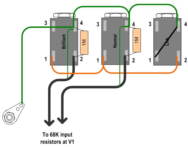 one strange issue that I wonder if anyone here has any thoughts about: the treble control does something weird in the final 1/12 or so of its travel (between ~5 o'clock and dimed). Up to this point, it performs as expected, but once it crosses this point there's a slight audible (through the speaker) pop, and the sound stays bright, but gets suddenly sort of choked or pinched sounding (though still bright). Seems strange, and I have no idea what kind of issue would cause this to only occur at the upper extreme of the knob's travel. I could live with it, but I'm OCD enough to want to chase down a cause.