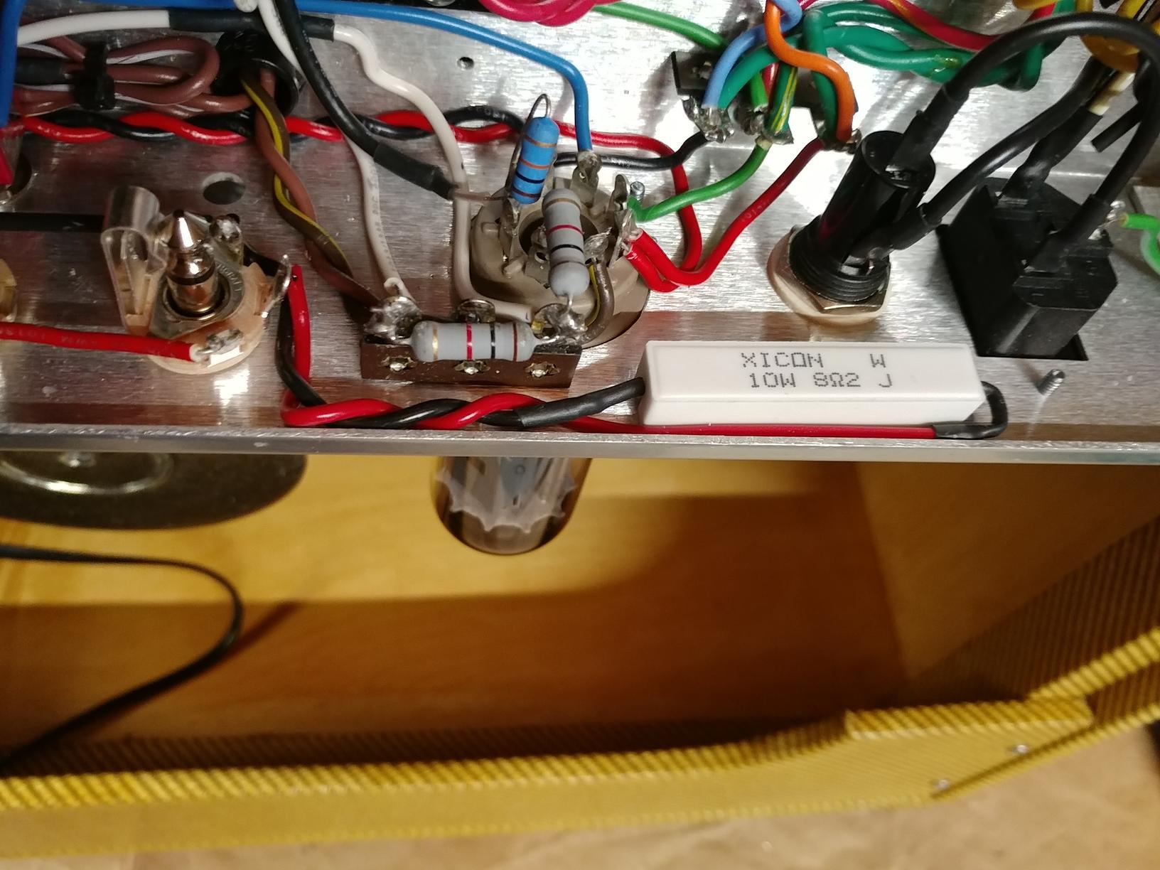 Starting small, my first modification is a safety resistor to prevent damage if I forget to plug the speaker in. Here's what I did: