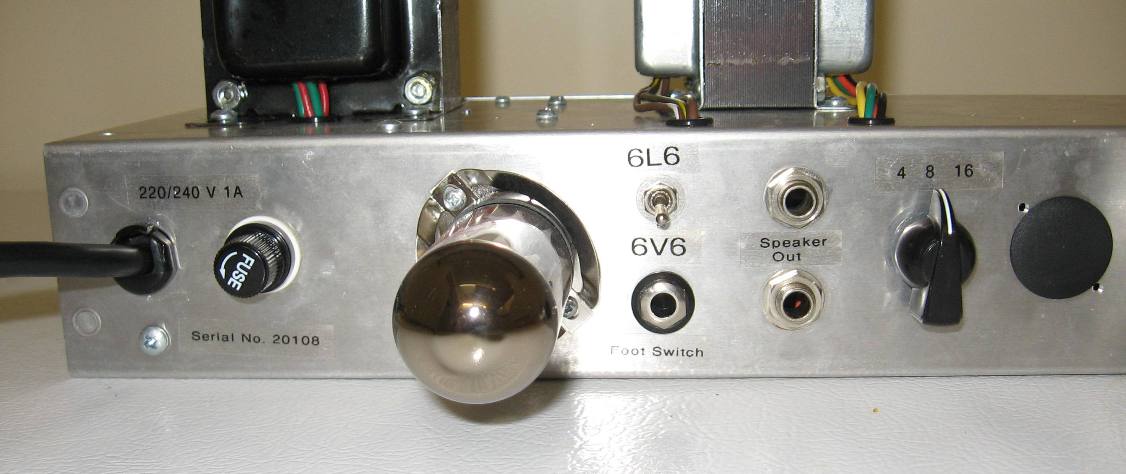 View of Modifications to accommodate Foot Switch jack and Power Tube Bias switch.