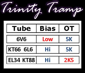 Tramp!! Plus, you can pull the Bass control knob out for Fat (used to be called Tweed) or in for Thin (formerly 'Tude)), built in VRM, Volume and Gain and if you make the some of the mods listed in Tone Tweaking you have a large choice of tubes. I like the EL 34. See attached file. I think Cheops created it.