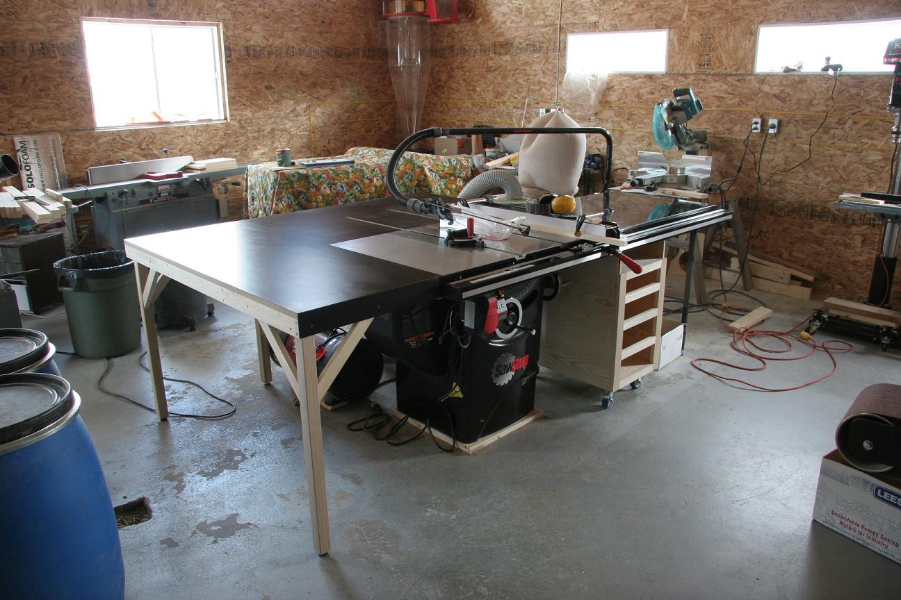 The saw stop industrial 10" (5 HP) table saw. This will be my workhorse saw, where I do a lot of various cutting/dadoes and rabbeting, etc. Right beside my big bench for convenience. Also I need yet to make the side and outfeed tables.