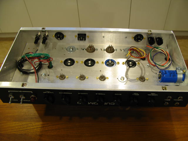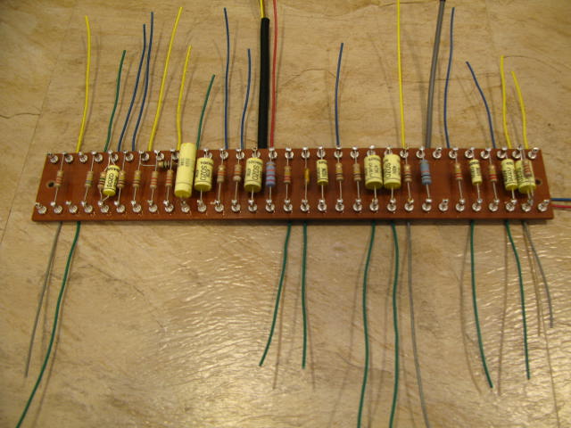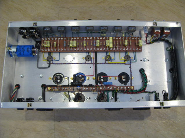 Then I wired the preamp board to the pots and put in the last of the resistors and capacitors.