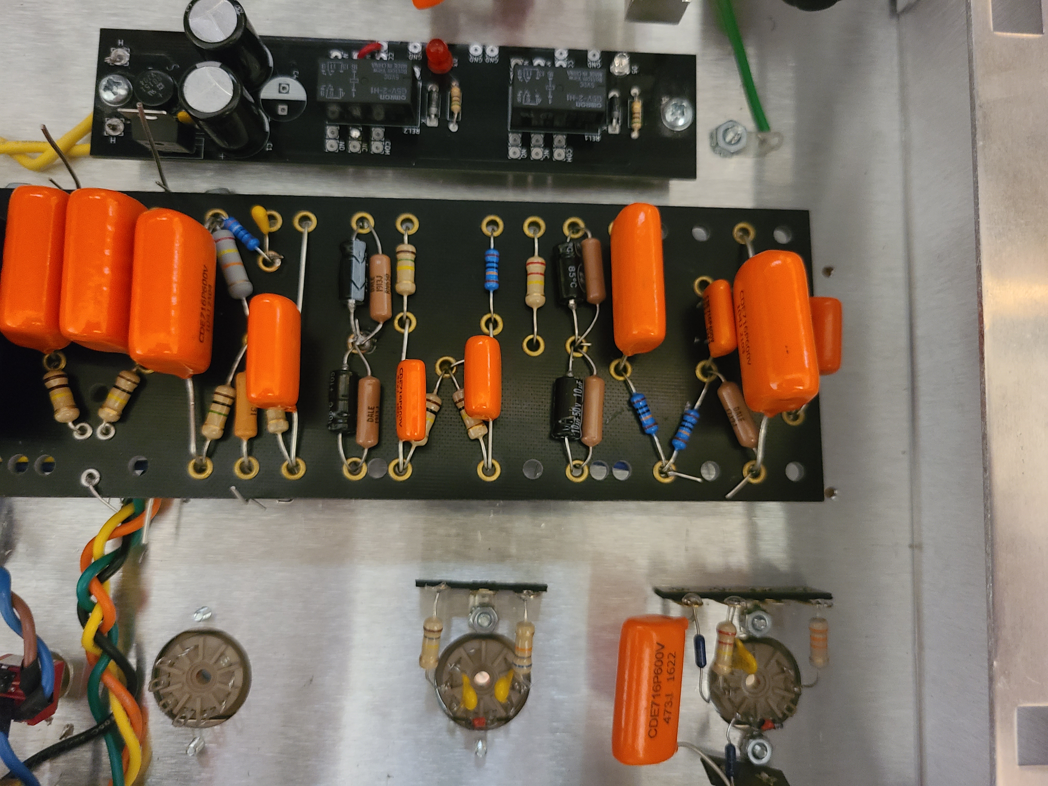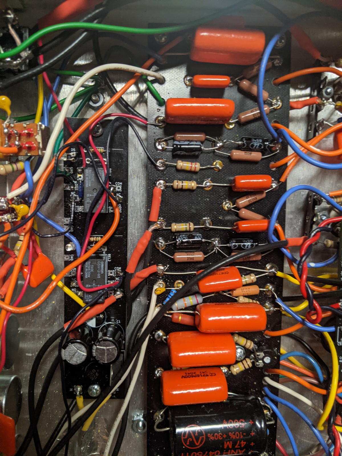About the led, I think I was either short one, or more likely knocked off my bench and swept up. I used a 5mm red led in its place I have stocked for pedals. I've tested it, and it blinks while the other stays lit. I've attached a picture of the relay board and eyelet board.