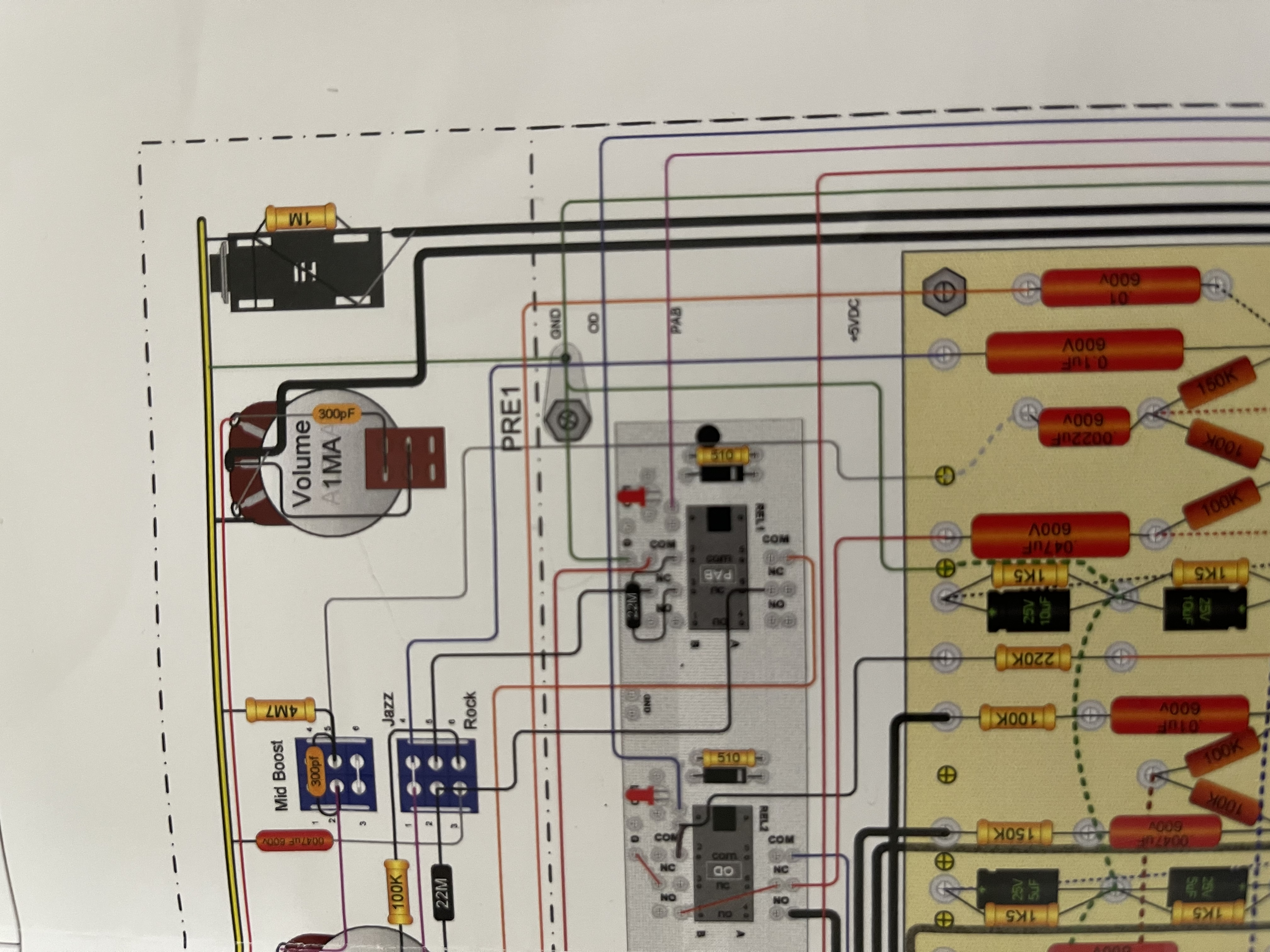 Hi, just finished my OSD build today. Only issue i have is when taking the amp out of standby, i get a loud hum through the speaker, this is without OD or Boost turned on. Would greatly appreciate some help. If i turn on OD the hum gets alot quiter, boost doesnt seem to effect it much. Volumes do kinda effect it. If i turn OD Volume and Master volume off it will go away, but if either is turned on, hum is loud. B4 voltages are a little low at 303 and B5 voltages low at 295