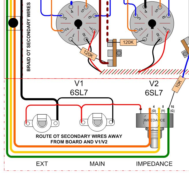 Important Note: Ensure Output Transformer Secondary wires are routed far from the input to V1 & V2Attachment: