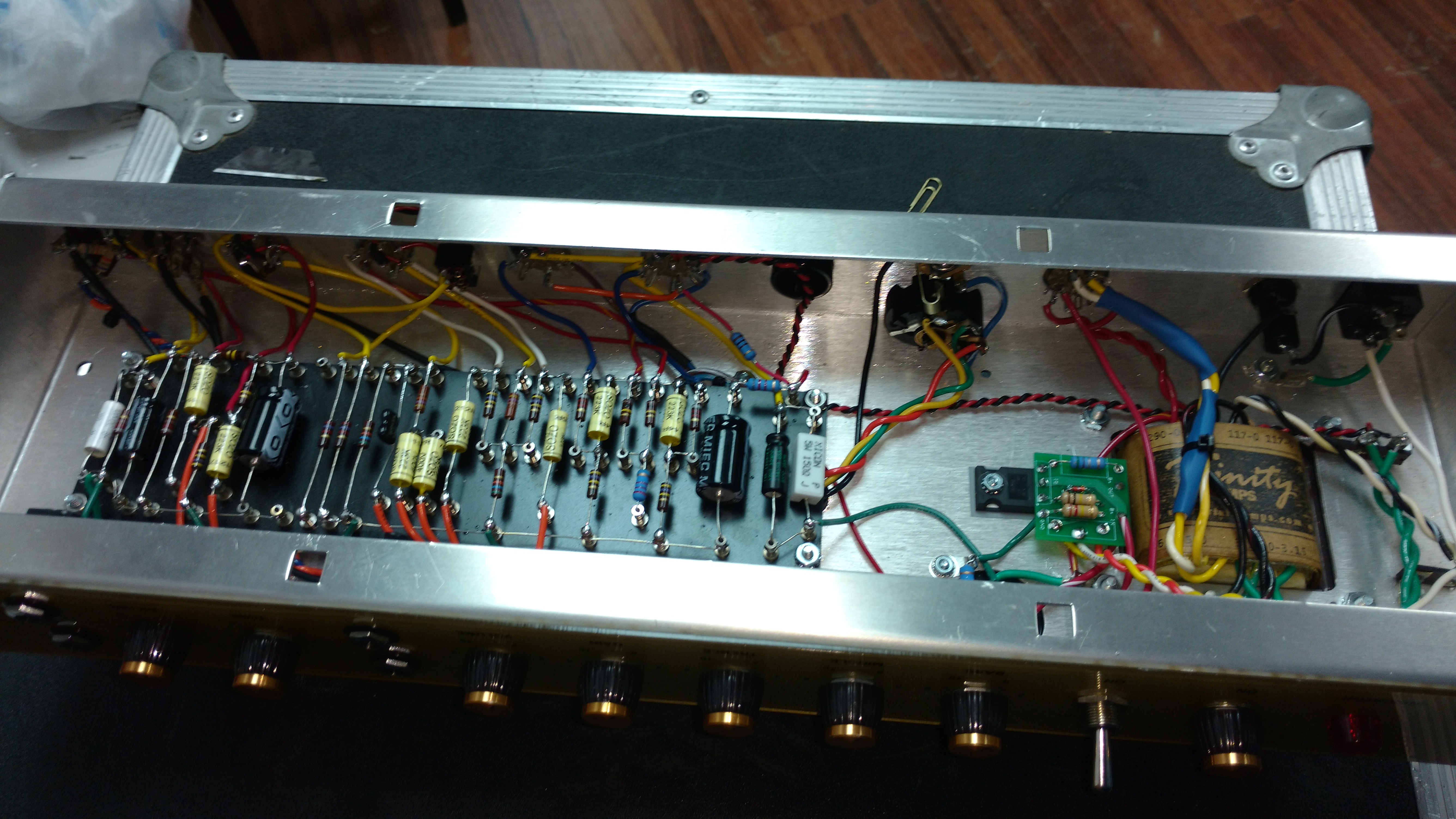 Ac couple of weeks ago I got a call from an acquaintance that knows I build amps for a hobby. (Though usually from scratch.) A guy that he knows had a Trinity amp kit that yet a 3rd guy had started building for him and for whatever reason couldn't or wouldn't finish. I'm not privy to all the details. Anyway, the guy asked me if I'd help out and I said I'd be glad to.
