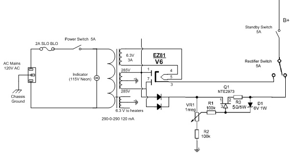 My plan was to use the VRM to bring down the voltage to match the B+ of the EZ81. It was working at first. I was able to dial the voltage to where it matched the ez81 but then one day I noticed the voltage going way low (I had the VM clipped to the B+ so I could monitor it while playing) and my guitar sounded funny (buzzy/farty) and my son said "that doesn't sound good". I turned it off and ever since then the VRM does not seem to work right. In cathode bias the VRM 1 meg pot only varies the voltage from 339 all the way down to 341 all the way up. I should be able to vary it from 35-40 volts up to 350-370 volts (which I was able to do at first) so something is going on in the VRM.