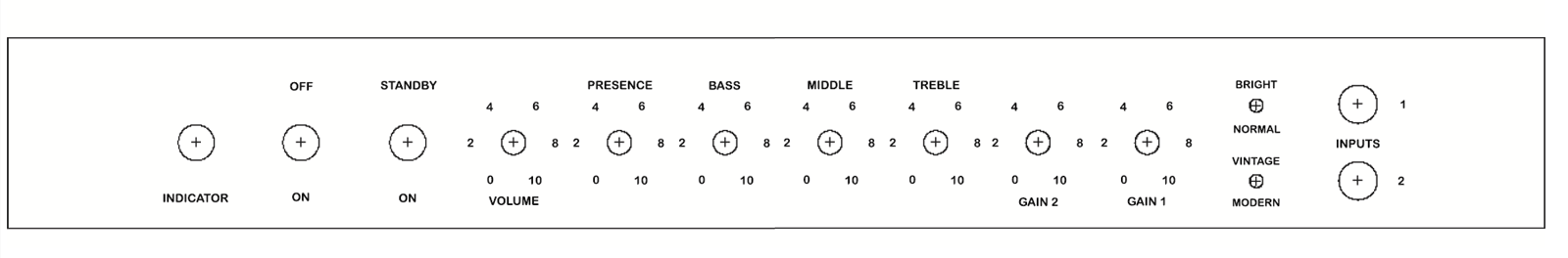 The Vintage/Modern switch switches between the Plexi(1959) and JCM800(2203) modes. Basically just a cascade switch. Gain 2 is only available in Modern mode. Here is my latest schematic: