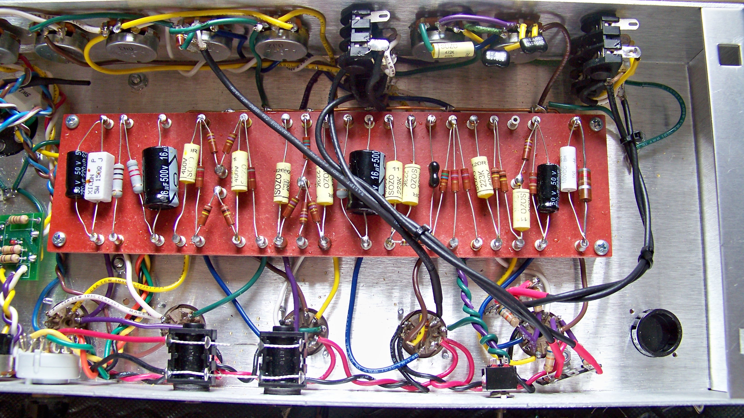 I actually have .0047 on my normal channel. Gives about 25% more bass, just enough to thicken the sound more without getting whooly. Now the other thing about the .0022 is I think it goes better when cascading the channels. I now cascade the "bright" ch. V1A into the "normal" ch. V1B and so I have very little bass in the first 2 gain stages. Then with the .0047 on the normal ch brings the bass response back in. This really helps keep it tight and not flubby at high gain. I have also added a "fat" switch (330uf bypass on V2A) to bring a little bass back when not cascading. Again just enough to thicken it up a bit.