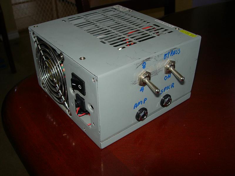 Using an old computer power supply case & fan is a great idea. One thing concerns me a bit about the schematic.....the switched jack on the spkr out. If the unit is set to bypass & nothing is plugged into the jack, wouldn't it be a dead short to the amp? :shock: