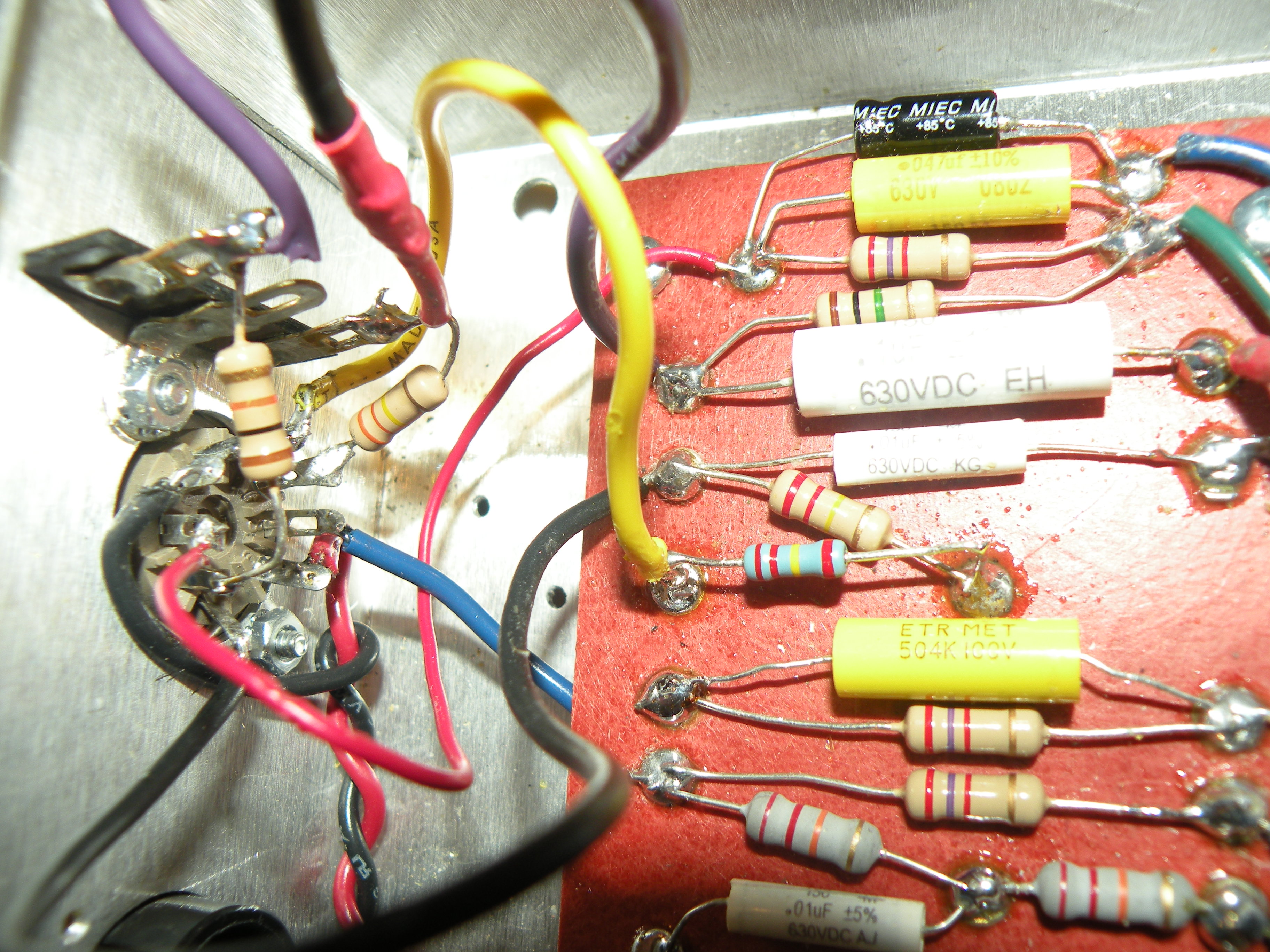 :? :?: However, I get NO SOUND from the input jack. No buzz when I touch the copper tip wire with my mutimeter probe. There is no buzz when I touch the input jack side of the .1uf capacitor that is in line from pin #7. However, there IS BUZZ when I touch the preamp pin#7 and both before and after the 330k resistor; there is also buzz when I touch the preamp tube side of that .1uf capacitor, but NONE on input jack side of that .1uf capacitor.