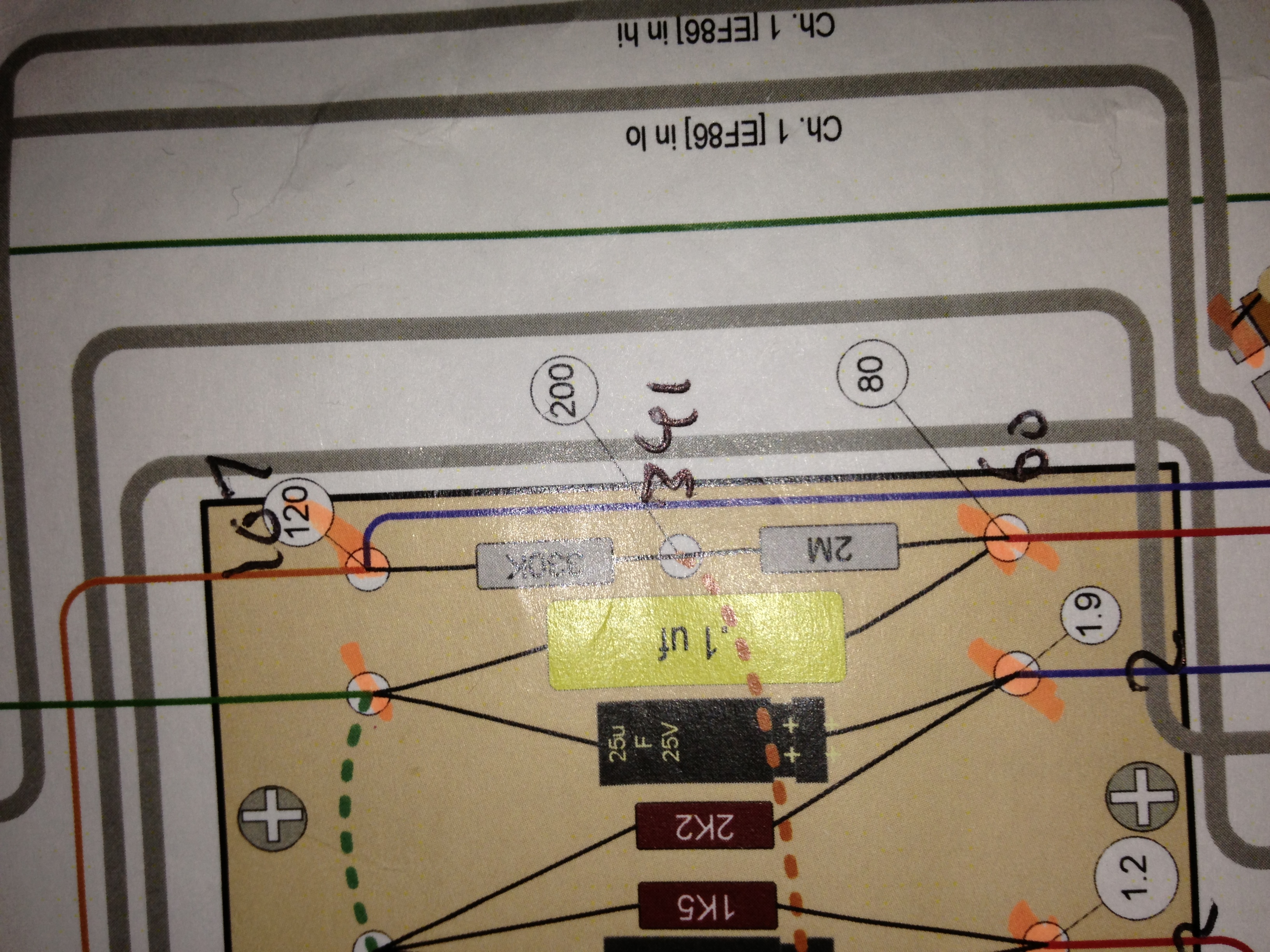 The right vertical side of the board. 60 (80) 341 (200) 107 (120). The resistors are correct values i have attached a photo of my