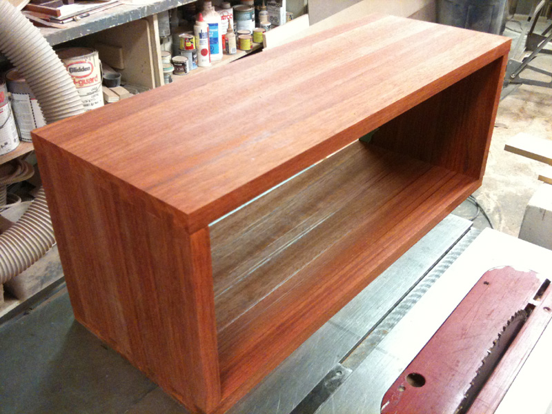 Here are a couple of pictures of the finished amp. I built the cabinet out of solid African padauk wood. I'll post a couple of more messages with other pictures taken during the build, too.