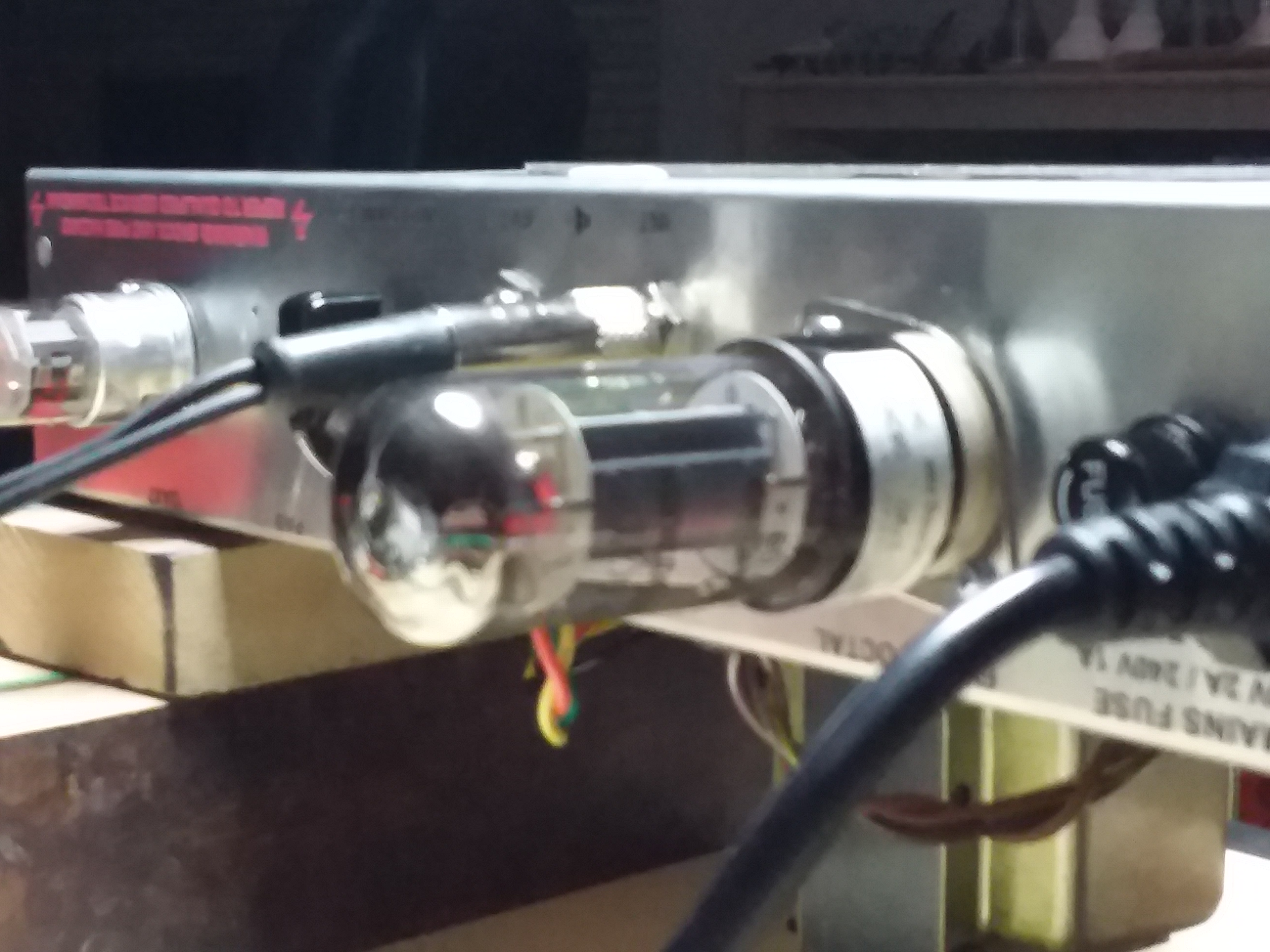 I took some pictures of the power tube with the VRM set at 3 different settings, 10, 6 and idle. The glow became less as I went to the lower VRM settings. I've rechecked my voltages again and they all were within spec.