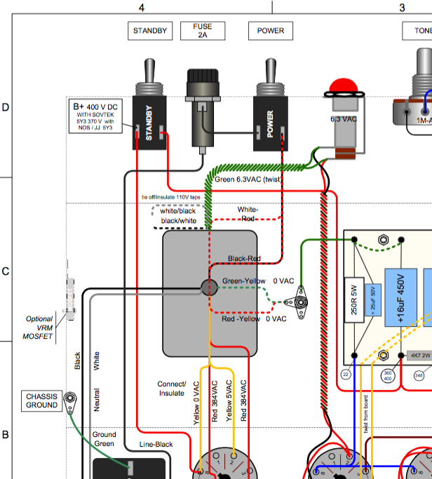 How to wire the VRMThe diagram in the VRM documentation (version 3.1) locates the VRM potentiometer on the front panel. But that's where is now located the power switch (not present on the VRM layout). The tweed documentation require to connect a red wire between the right side of the standby switch to the the eyelet board (to the 4K7 resistor). Do I have to remove this wire ?