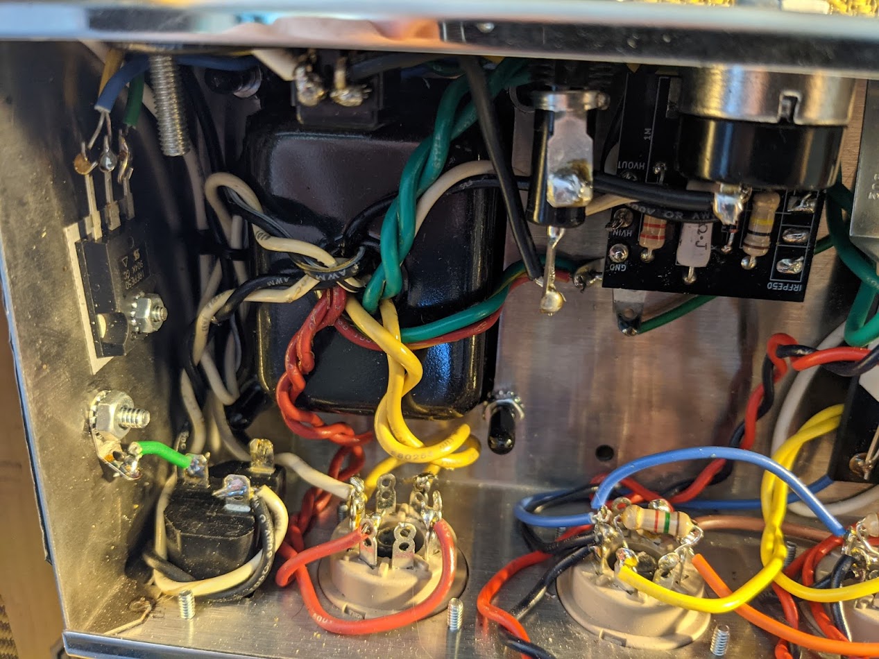 I’m hoping someone can help me isolate and solve a mysterious, and likely quite dangerous, shorting (?) issue with my new Trinity 5e3 build, with VRM. Quick background: I don’t have much of one. This is my first amp build (I’ve built some pedals and patch cables, and solder things in and out of my guitars pretty routinely, but that’s about it), so I am very much a novice. But I took my time with the build, have read (and re-read) all of the documentation carefully, and took care with my soldering (I also consulted this board frequently, which was a great help). Initially, I thought this approach panned out—all of my readings looked pretty good, and the amp started up on the first attempt, using a power strip in my studio room. VRM worked like a charm, and the amp sounded great. So far so good—I was very much enjoying the new amp, and plumbing the tonal mysteries of its interactive circuitry. I’d had probably had 10-15 hours of issue-free playing time (the amp started up perfectly every time, etc.). And then things took a turn.